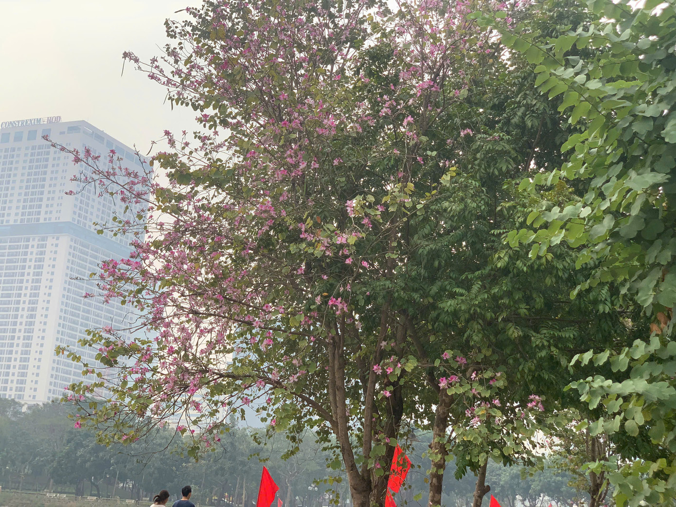 Bên cạnh sắc tím đặc trưng, hoa ban trắng cũng nở xen kẽ tại khu vực Công viên Cầu Giấy, tạo nên khung cảnh vừa hài hòa vừa cuốn hút. Những ngày này, nơi đây trở thành điểm dừng chân yêu thích của các nhóm bạn trẻ. Họ thường đi cùng nhau, luân phiên chụp ảnh và tạo dáng dưới tán hoa để ghi lại những bức ảnh đẹp. Khung cảnh rợp sắc hoa không chỉ là nơi lý tưởng để lưu giữ kỷ niệm mà còn mang đến không gian thư giãn, khiến mọi trải nghiệm ở đây đều trở nên ý nghĩa.