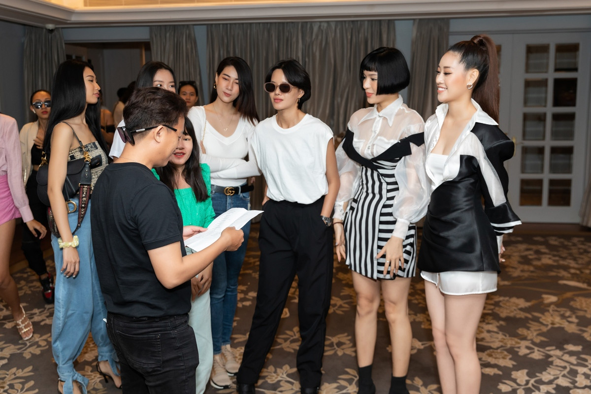 Hoa hậu Khánh Vân diện thiết kế có tông màu trắng đen, khoe đôi chân dài ấn tượng với thần thái ấn tượng. Người đẹp hăng say tập luyện cho show diễn, bởi Khánh Vân là một trong hai nàng thơ chính trong show của Hoàng Hải lần này cùng với ca sĩ Lệ Quyên.
