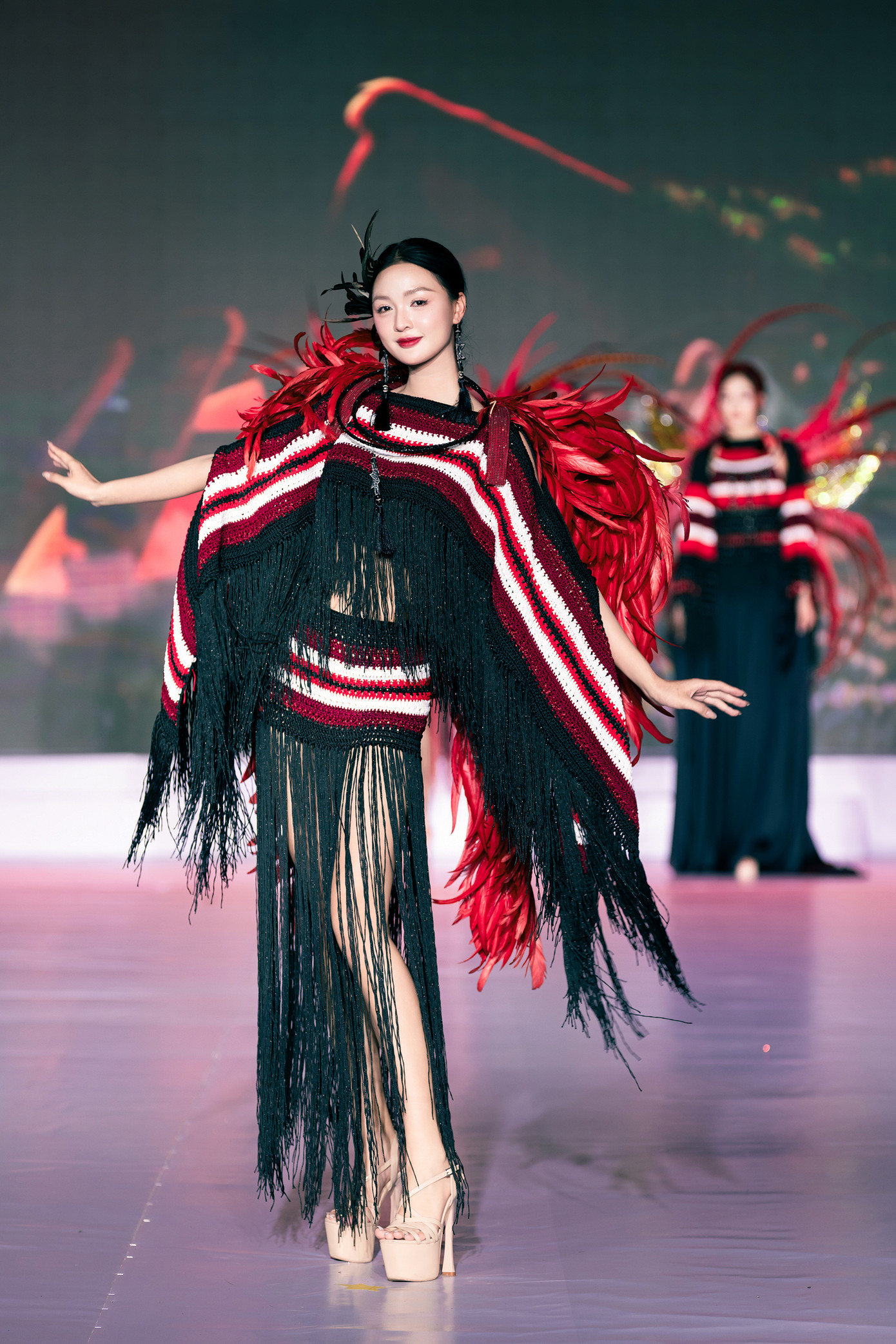 Nhà thiết kế Việt Hùng cho biết bộ sưu tập này được lấy cảm hứng từ thổ cẩm và được tái hiện bằng nghệ thuật móc len thủ công.