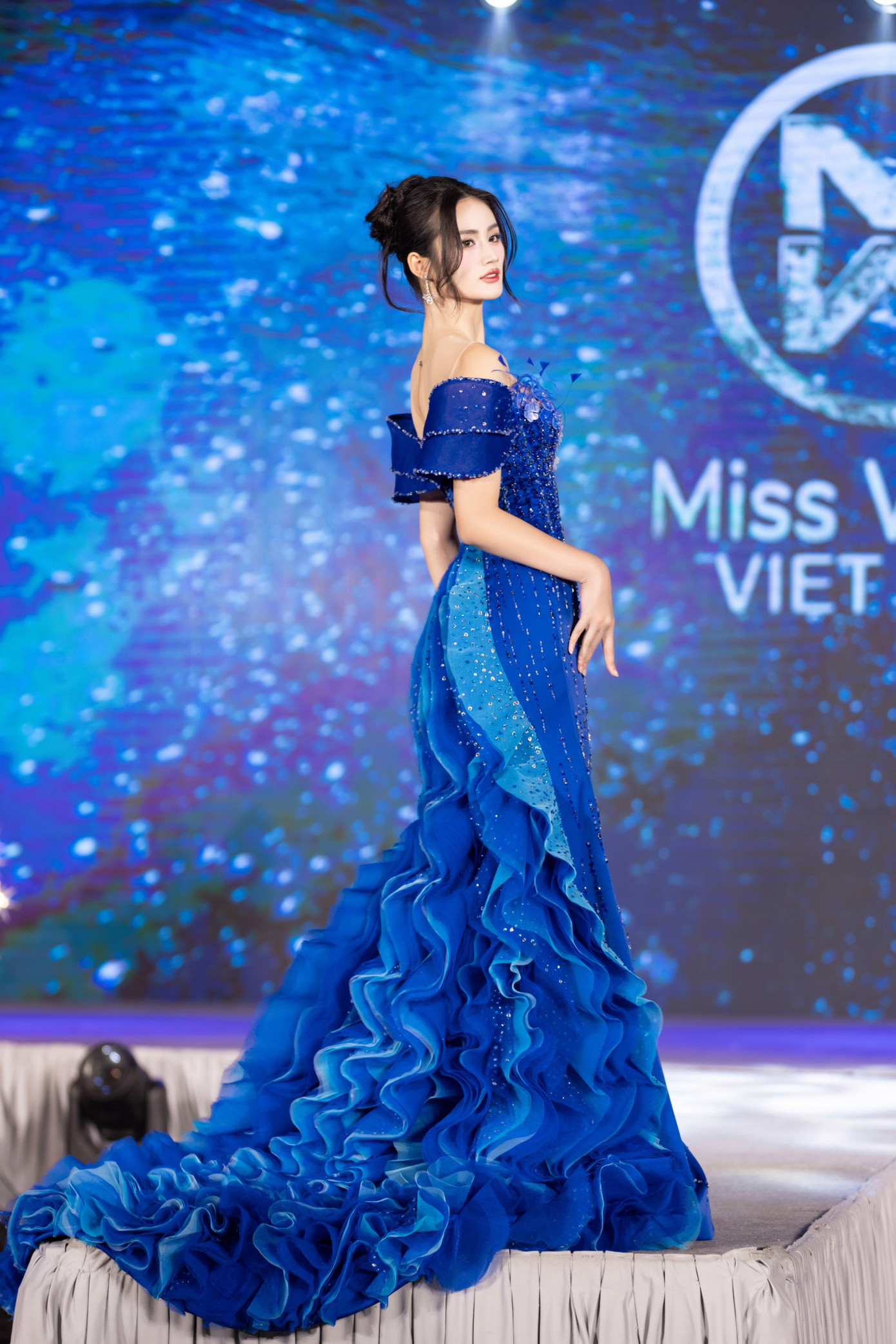 Trang phục đầu tiên mang tên “Aurora of the sea”, lấy cảm hứng từ hiện tượng cực quang hiếm gặp trên biển.