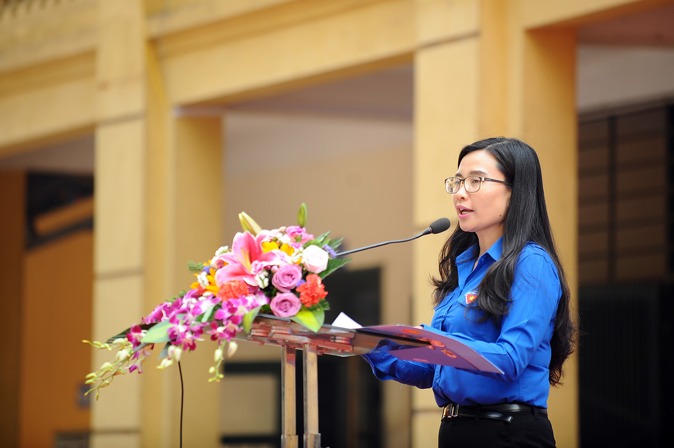 Chị Nguyễn Phạm Duy Trang, Ủy viên BTV Trung ương Đoàn, Phó Chủ tịch thường trực Hội đồng Đội Trung ương phát biểu tại buổi lễ.