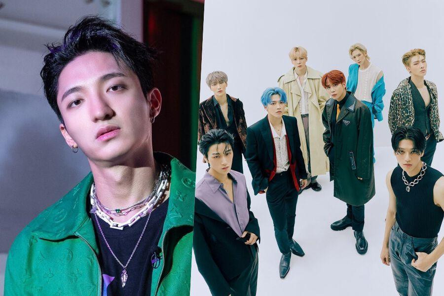 | Wooyoung (tóc đỏ) cố tình thực hiện lại động tác đang gây tranh cãi trong màn biểu diễn dưới sự cổ vũ của các vũ công và thành viên khác của ATEEZ. |