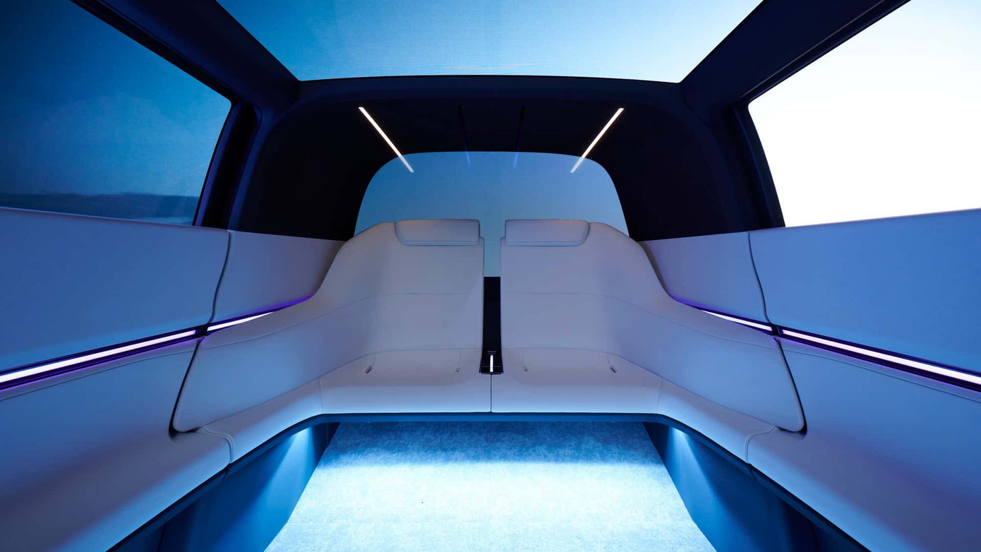 Chiếc Space-Hub còn lại là một mini van có nóc kính toàn cảnh mở rộng từ đầu xe tới hết khoang hành khách. Xe trang bị cabin rộng rãi, ghế hành khách xếp đối diện hướng tới phục vụ linh hoạt và đa dạng nhu cầu của người dùng tương lai.