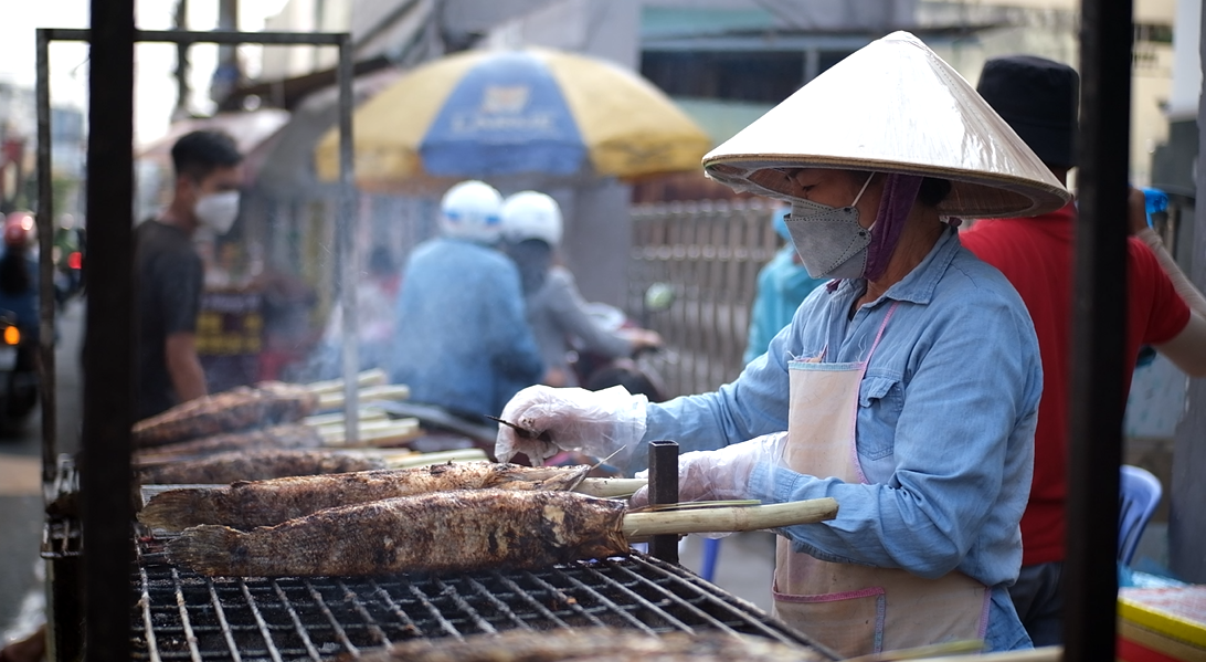 | Theo quan niệm của người dân địa phương, mua cá lóc nướng về cúng ngày vía Thần Tài sẽ mang lại tài lộc, sung túc và nhiều điều may mắn. |