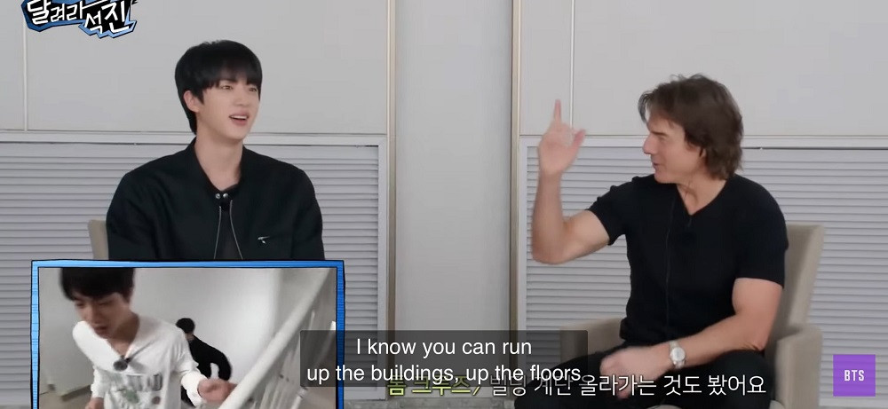 Gần đây, ngôi sao hành động huyền thoại của Hollywood Tom Cruise đã tham gia chương trình Run Jin! - một chương trình giải trí chiếu trên YouTube của Jin (BTS). Sự xuất hiện của Tom Cruise trong vai trò khách mời khiến các fan bất ngờ, và càng ngạc nhiên hơn nữa khi Jin tiết lộ rằng chính ê-kíp của Tom đã đề nghị trước về việc tham gia chương trình nhân dịp nam tài tử đặt chân đến Hàn Quốc để quảng bá cho siêu phẩm hành động Mission: Impossible - The Final Reckoning.