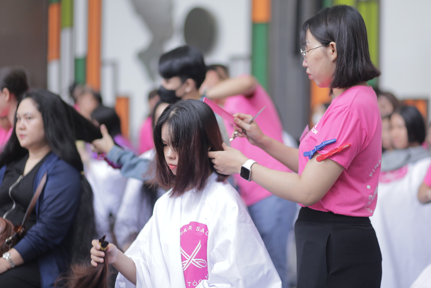 Tại khu vực tổ chức, rất đông các bạn trẻ đứng xếp hàng để chờ đến lượt hiến tóc, dù đã quá giờ trưa. Mỗi mái tóc được cắt không chỉ là một hành động đẹp, mà còn là minh chứng cho tinh thần sẻ chia, sẵn sàng mang lại niềm hy vọng cho những bệnh nhân ung thư. Khánh Vân (trường ĐH Kinh tế - Tài chính TP. HCM) chia sẻ: “Mình biết đến hoạt động này thông qua mạng xã hội TikTok, thấy hoạt động rất ý nghĩa, bởi vì người nhà mình cũng đang mắc bệnh ung thư. Mình hiến 35 cm tóc, sau khi cắt thì mình thấy hơi tiếc chút nhưng bù lại mình có thể giúp cho người bệnh có được một bộ tóc mới bằng tóc thật, việc đó rất ý nghĩa nên mình không thấy tiếc gì nữa cả”.