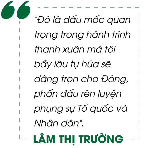 Ngày đất nước khí thế kỷ niệm 70 năm Chiến thắng Điện Biên Phủ càng thêm đặc biệt với Lâm Thị Trường, khi cô khi vinh dự được kết nạp Đảng.