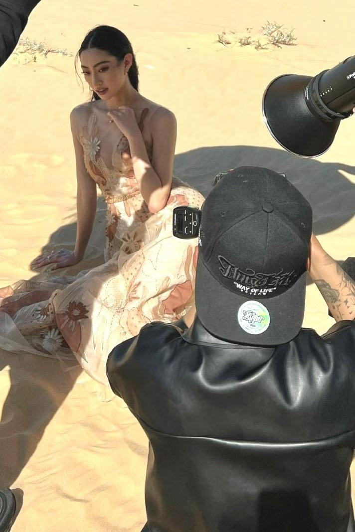 Hoa hậu Lương Thùy Linh vừa khiến người hâm mộ bất ngờ với bộ ảnh thời trang mô phỏng điệu múa trên đồi cát. Cô diện loạt thiết kế cầu kỳ, trang điểm theo phong cách sắc sảo và thực hiện nhiều động tác uyển chuyển rất đẹp mắt. Các thiết kế mà Lương Thùy Linh mặc trong bộ ảnh thuộc bộ sưu tập sắp ra mắt của NTK Lê Thanh Hòa, sẽ được trình diễn trong show thời trang Sa vũ tổ chức vào đầu tháng Tư.