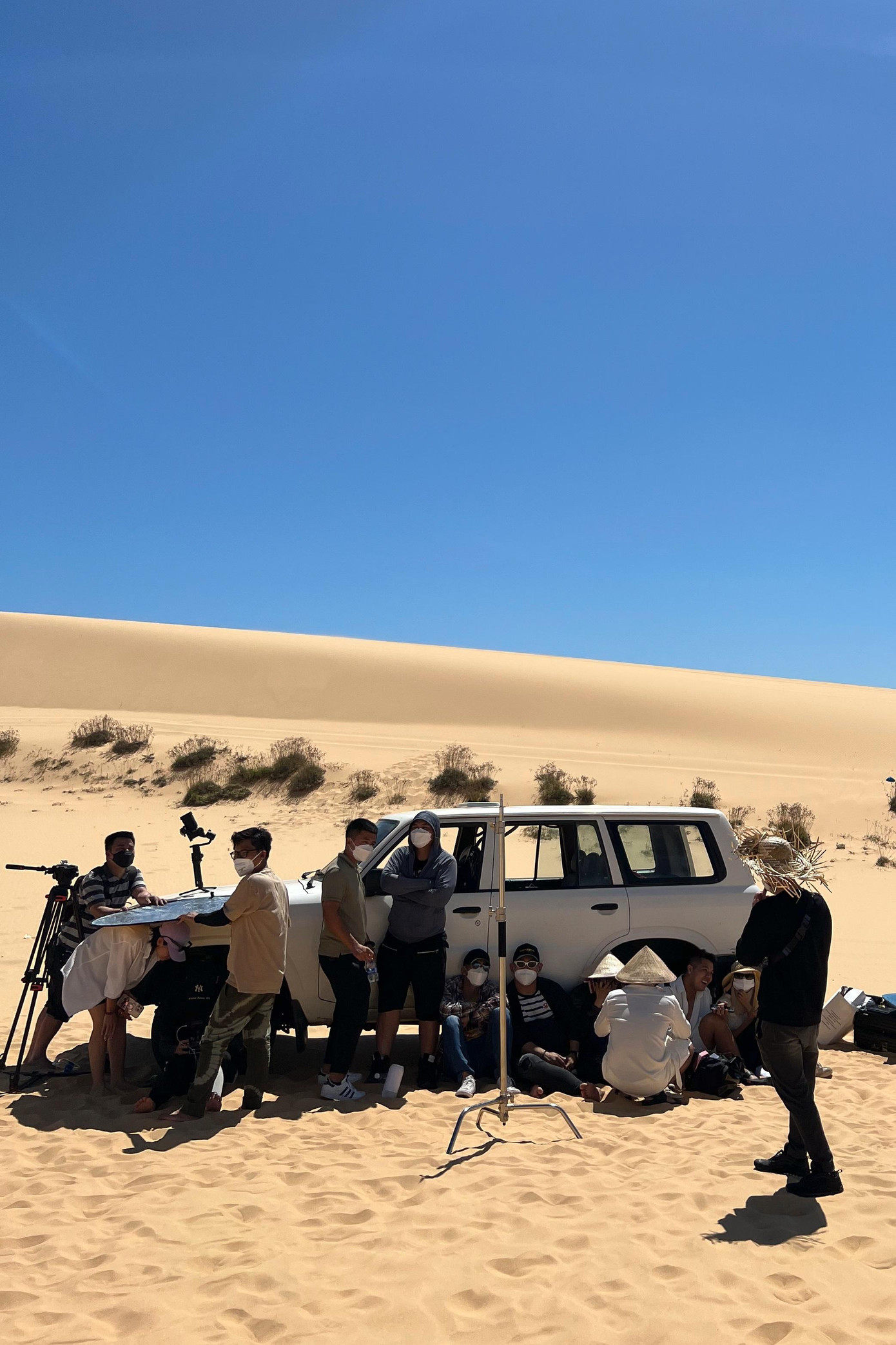 NTK Lê Thanh Hòa cho biết chọn địa điểm chụp ảnh là một đồi cát. Địa hình cát trắng mênh mông cùng thời tiết nắng nóng khiến cả ê kíp gặp nhiều khó khăn khi di chuyển và chụp ảnh. Những thiết bị, máy móc phục vụ buổi ghi hình đều rất nặng và tốn nhiều sức vận chuyển do bề mặt cát lún.