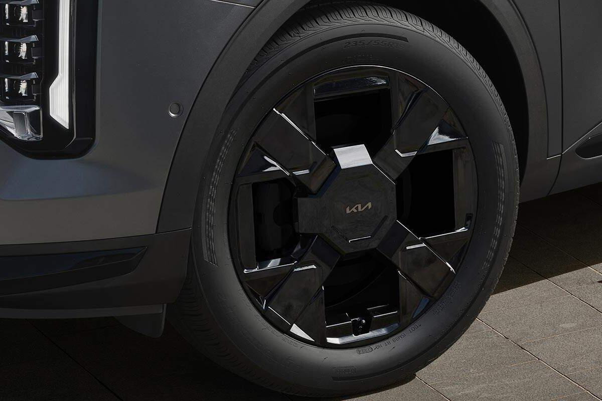 Riêng phiên bản X-Line cao cấp nhất của Kia Sportage 2025 có một số điểm khác biệt như cản trước độc quyền, huy hiệu và mâm 19 inch tối màu, vô lăng 2 tông màu và trần nội thất bọc da lộn.