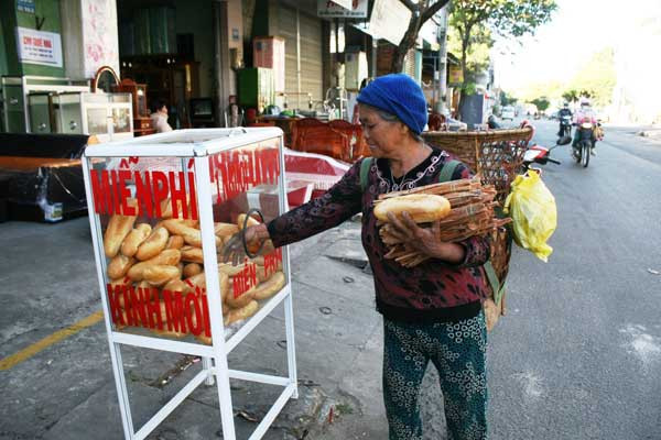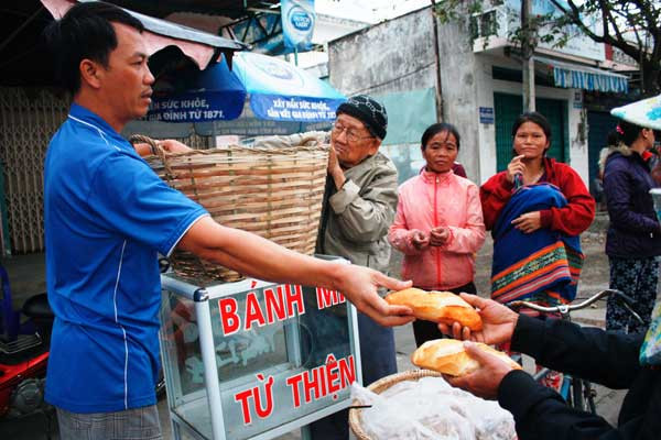 Cụ Lưu Bình (88 tuổi, ngụ tại P.Quyết Thắng) hàng ngày đạp xe đạp bán đậu phộng rang, đậu phộng luộc rong ruổi đi bán khắp các ngõ ngách, quán xá. Cuộc sống của chính cụ còn không ít khó khăn, vất vả, nhưng cụ cũng hào hứng dành dụm số tiền lời ít ỏi mua bánh mì đặt thùng trước cửa Bệnh viện Đa khoa Kon Tum trên đường Bà Triệu, giúp bệnh nhân và người nhà bệnh nhân.
