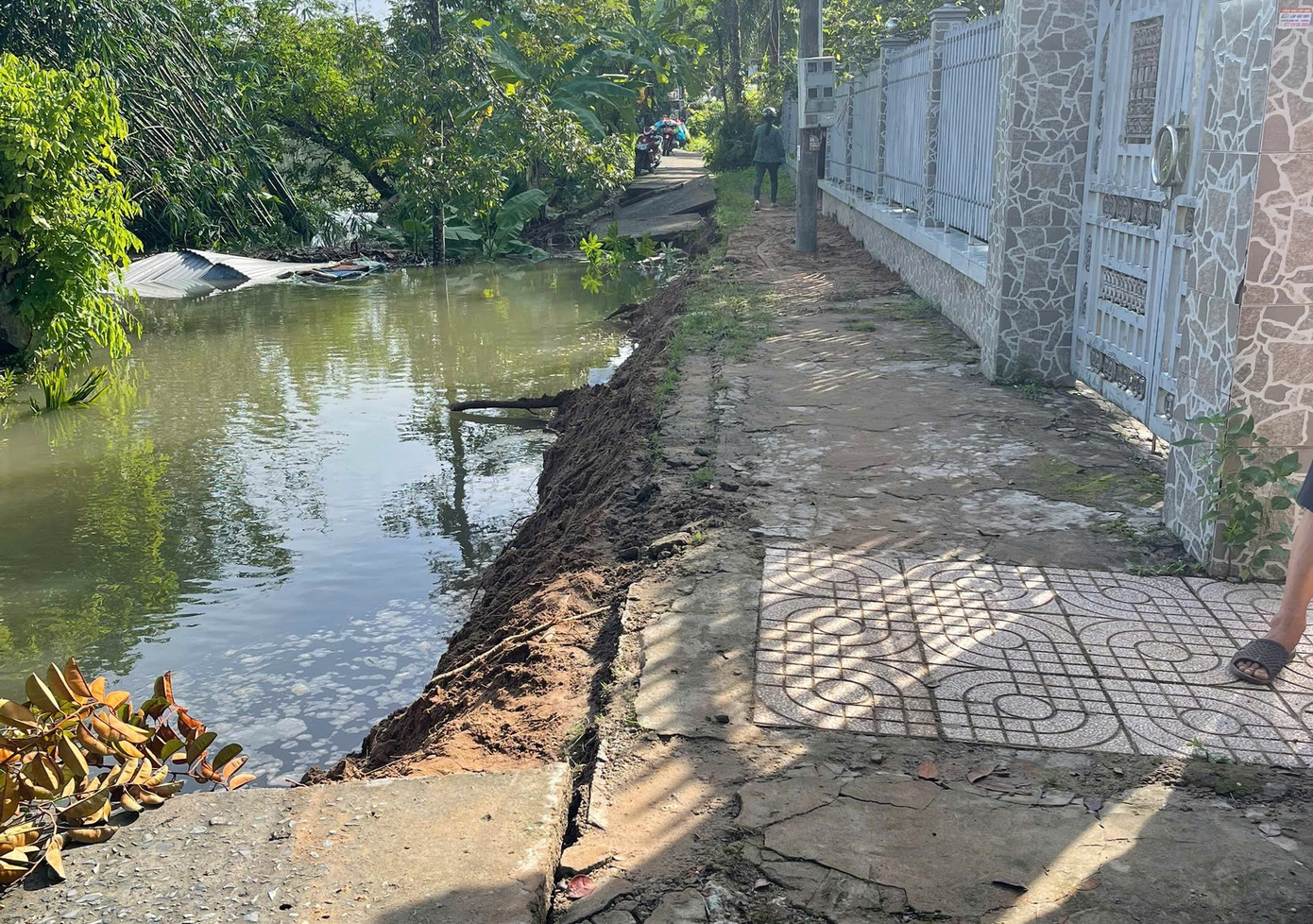 Sạt lở làm sụp mất đường giao thông nông thôn bằng bê tông rộng 2m và căn nhà ven sông, ước thiệt hại gần 300 triệu đồng. Nguyên nhân sạt lở do ảnh hưởng dòng chảy.