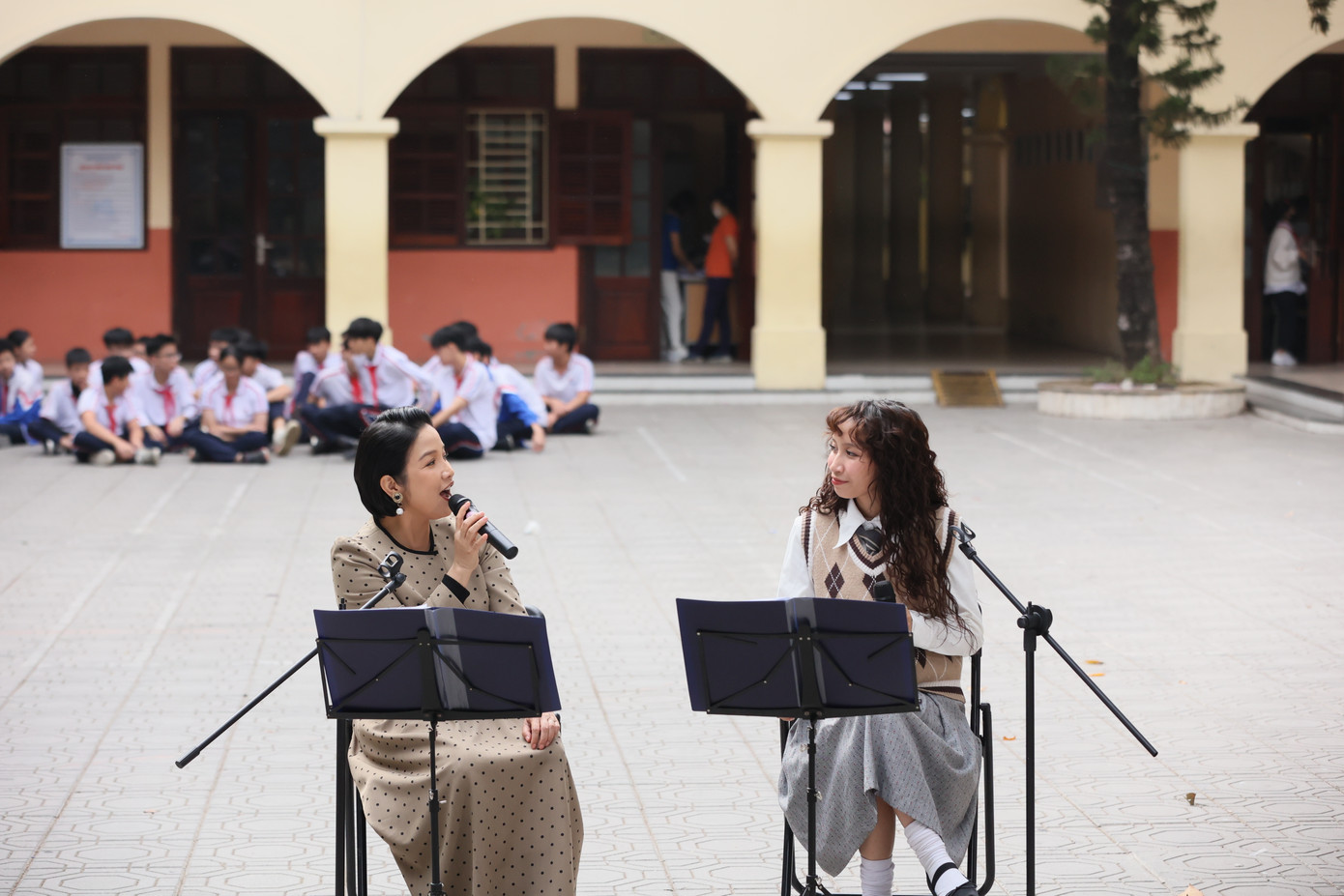 Tại ngôi trường này sau hơn 40 năm, diva Mỹ Linh có dịp ngồi lại biểu diễn, ghi hình, hát cùng con gái Mỹ Anh. Cả hai nghệ sĩ đã chọn ca khúc Cho tôi xin một vé đi tuổi thơ để thể hiện, vừa mang tinh thần tươi vui của tuổi nhỏ, nhưng cũng đầy bồi hồi của kỷ niệm.
