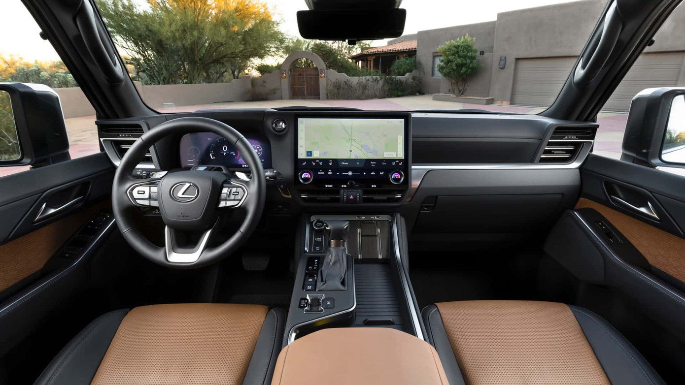 Về trang bị tiện nghi tiêu chuẩn, Lexus GX 2025 sở hữu cụm đồng hồ kỹ thuật số 12,3 inch, màn hình giải trí trung tâm 14 inch và dàn âm thanh 10 loa, cửa sổ trời và bộ mâm xe 20 inch. Ghế trước bọc chất liệu NuLuxe có chức năng sưởi và thông gió.
