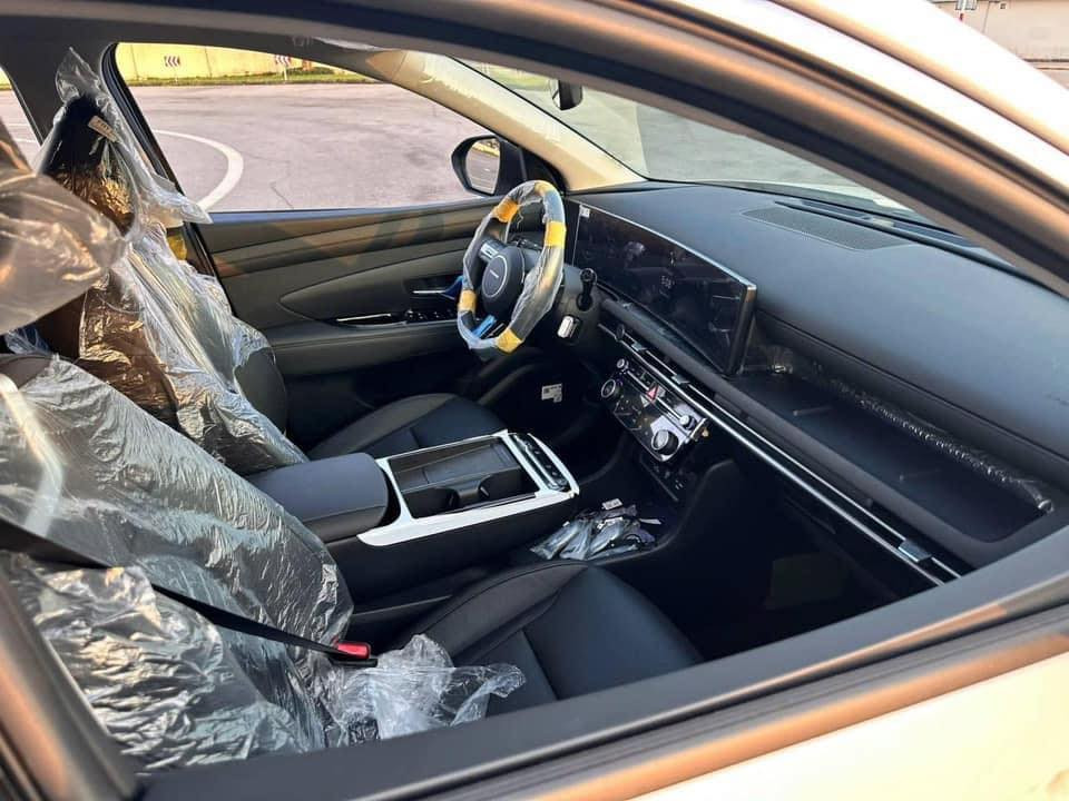 Về nội thất, xe được trang bị màn hình cong nối liền cụm đồng hồ và màn hình cảm ứng giải trí trung tâm, cả hai cùng có kích thước 12,3 inch. Vô-lăng thiết kế mới với ba chấu, bỏ logo Hyundai ở trung tâm, tương tự mẫu xe điện Ioniq 5. Cần số dạng xoay đặt phía sau vô-lăng giống mẫu Santa Fe 2024 mới ra mắt.