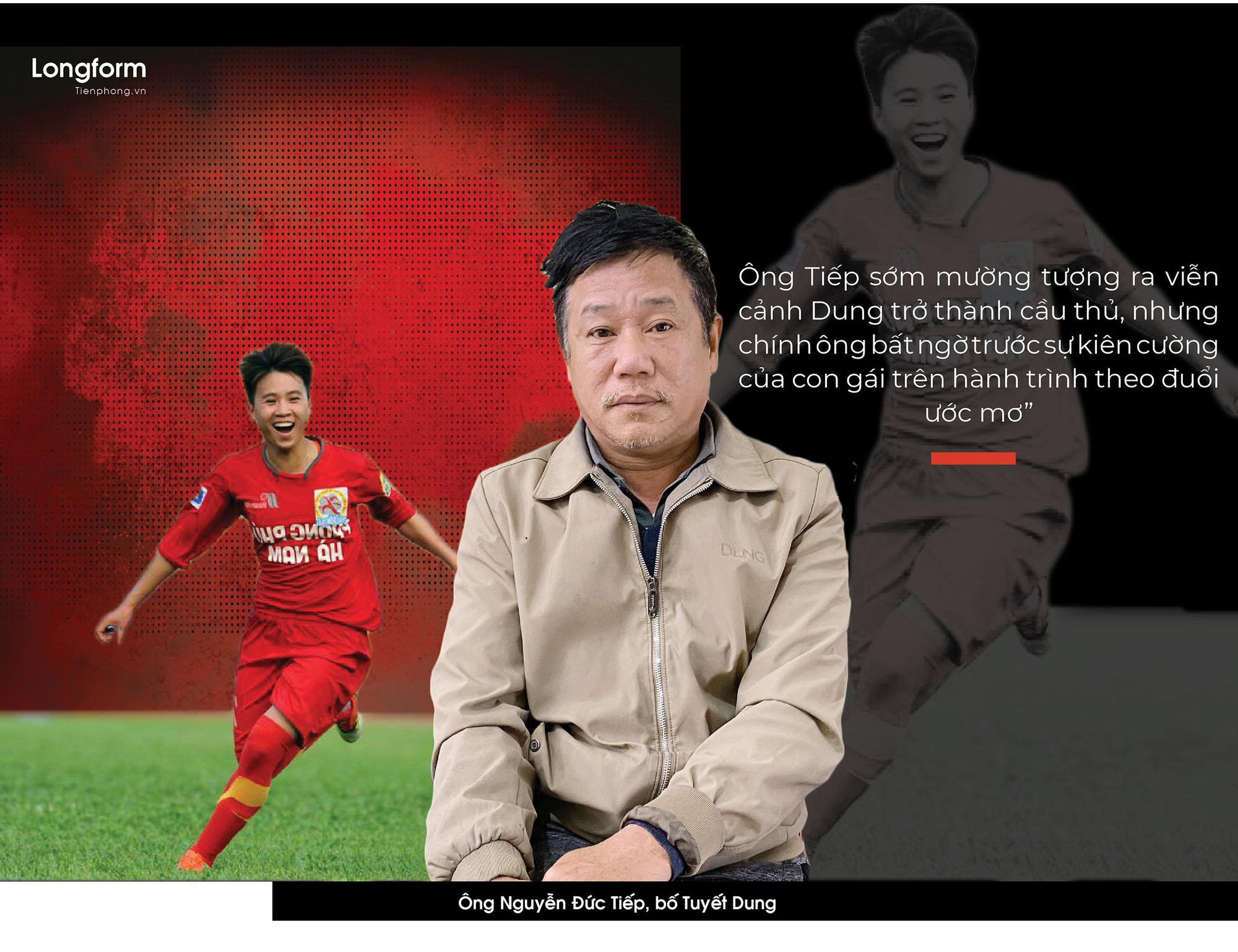 Vào lúc ấy ông Tiếp đã mường tượng ra viễn cảnh Dung sẽ trở thành cầu thủ. Tuy nhiên chính ông cũng không nghĩ rằng cô con gái bé nhỏ lại bản lĩnh, kiên cường đến thế trên hành trình theo đuổi ước mơ.