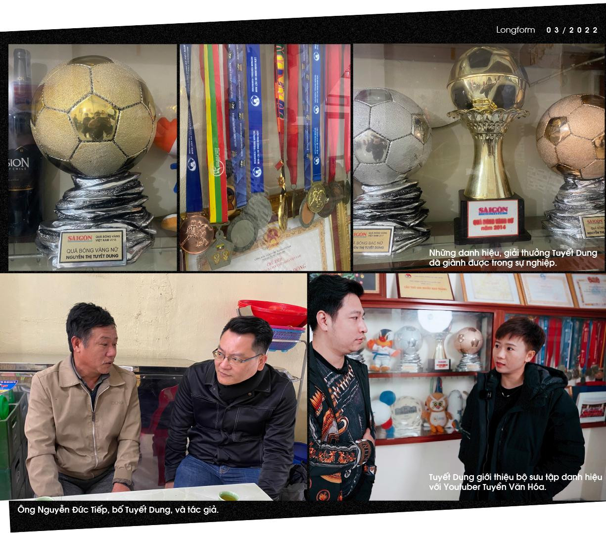 Hoặc tại nhà Tuyết Dung, một trong những bức ảnh được treo trang trọng là khoảnh khắc cô đối đầu với nữ tuyển thủ Thái Lan Taneekarn Dangda, em gái ngôi sao Teerasil, ở chung kết SEA Games 2019. Trong ảnh, Dung đang chạy đầy tự tin trước đối thủ cao hơn mình cả cái đầu.