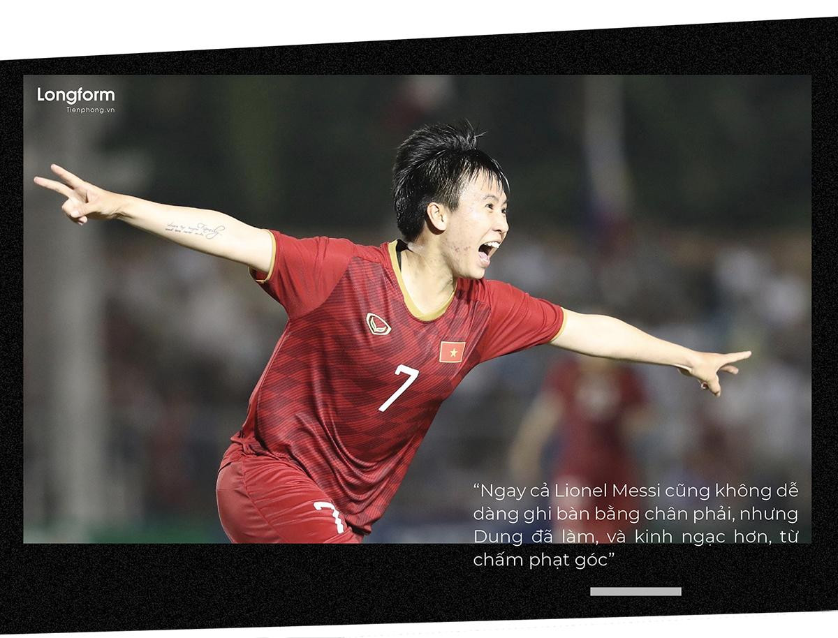 Nhớ lại, cú đúp bàn thắng từ chấm phạt góc vào lưới Malaysia ở AFF Cup 2015 đến vào thời điểm Dung mới trở lại sau chấn thương và đang tái khẳng định mình. Bàn tương tự trước Myanmar tại Asian Cup 2022 thực hiện trong bối cảnh Việt Nam cần một kết quả tốt để tiến vào tứ kết, qua đó nuôi hy vọng giành vé tới World Cup 2023. Như tờ Telegraph nhận định, “kỹ năng này cực kỳ khó, và càng khó hơn khi xảy ra trong một trận đấu tầm cỡ”.
