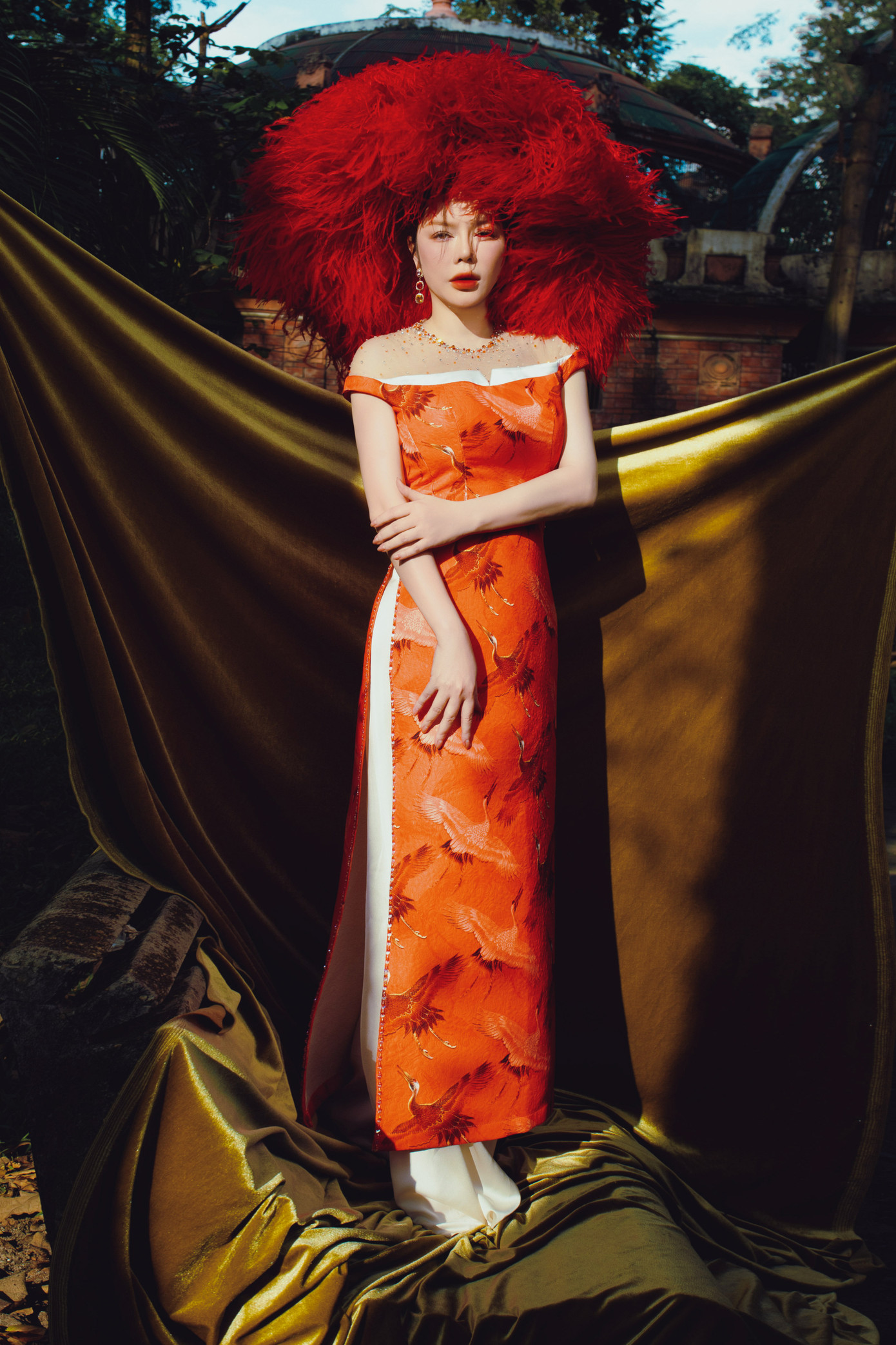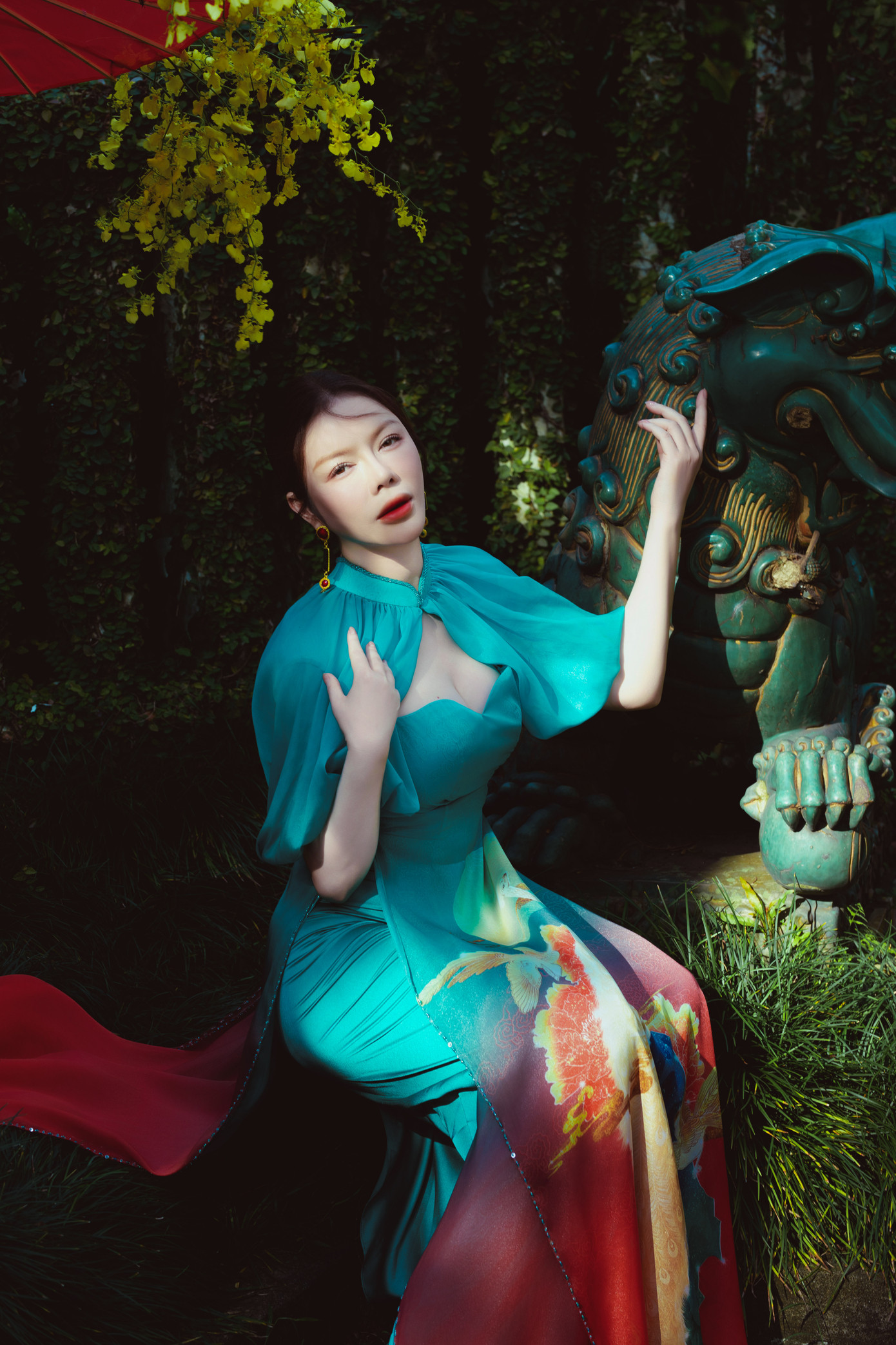 Bộ ảnh không chỉ đơn thuần là những bức hình thời trang, mà còn là một câu chuyện về sự kết hợp hài hòa giữa vẻ đẹp truyền thống của áo dài Việt Nam và không gian xanh mát của thiên nhiên. Thảo cầm viên với vườn hoa rực rỡ, cây xanh mát mắt là phông nền hoàn hảo để tôn lên vẻ đẹp của tà áo dài.