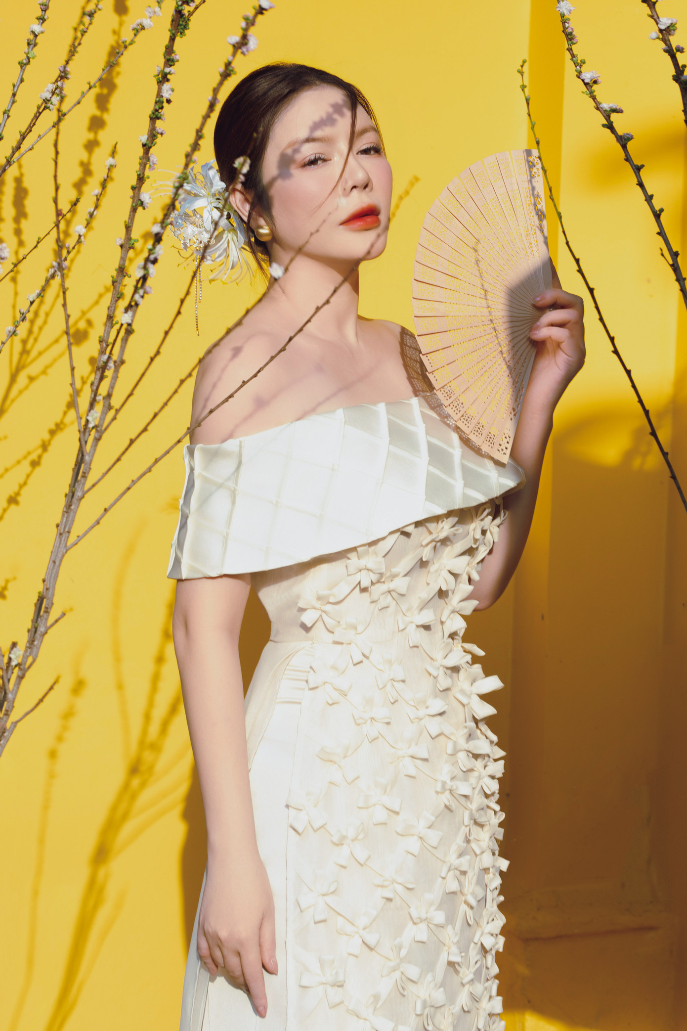 Với Lý Nhã Kỳ, Tết không chỉ là dịp để sum họp gia đình mà còn là cơ hội để cô được diện những tà áo dài truyền thống tuyệt đẹp. 'Nữ hoàng kim cương' cho biết: "Tôi rất yêu Tết, bởi vì đây là dịp để tôi được trở về bên gia đình, được quây quần bên mâm cơm ngày Tết với những món ăn truyền thống như bánh chưng, thịt kho tàu, canh măng. Áo dài luôn là lựa chọn hàng đầu của tôi trong những dịp đặc biệt như thế này".
