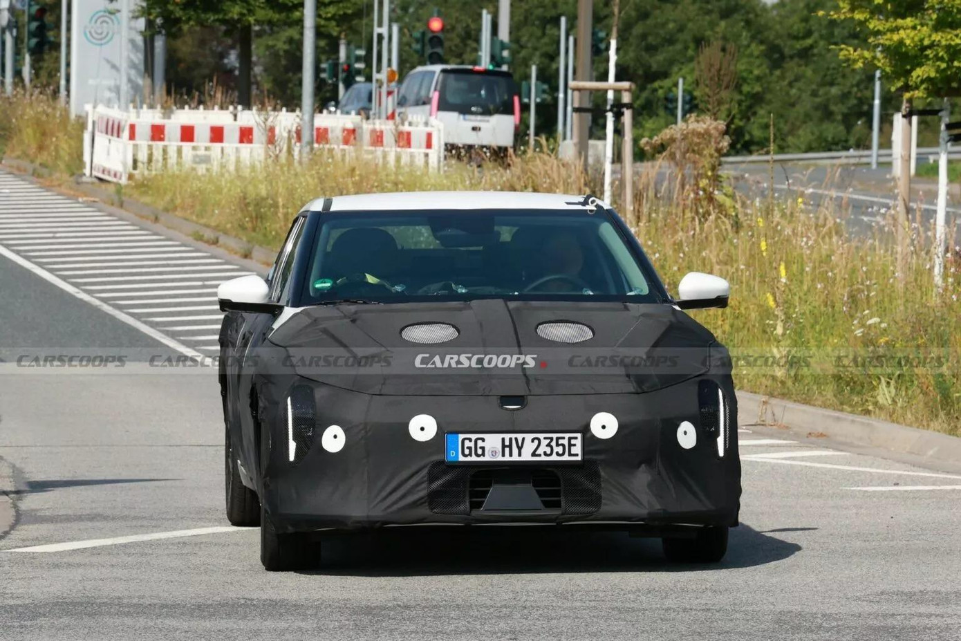 Về chiếc xe được phát hiện chạy thử tại châu Âu gần đây, dù đã được ngụy trang kỹ nhưng có thể nhận thấy nhiều nét đặc trưng từ mẫu concept vẫn được giữ nguyên. Thân xe được thiết kế mềm mại tinh tế tạo liên tưởng tới mẫu xe đàn anh Kia EV6.