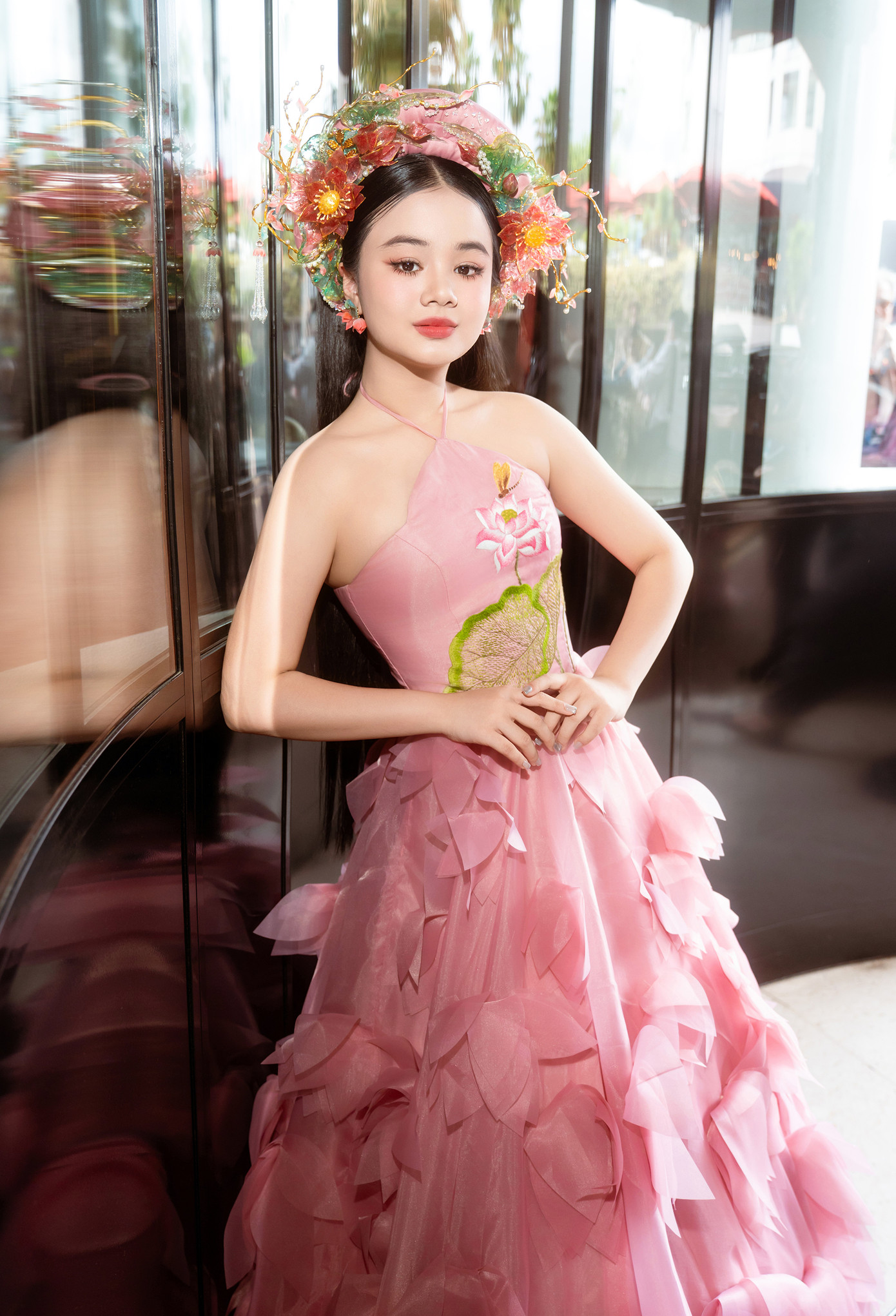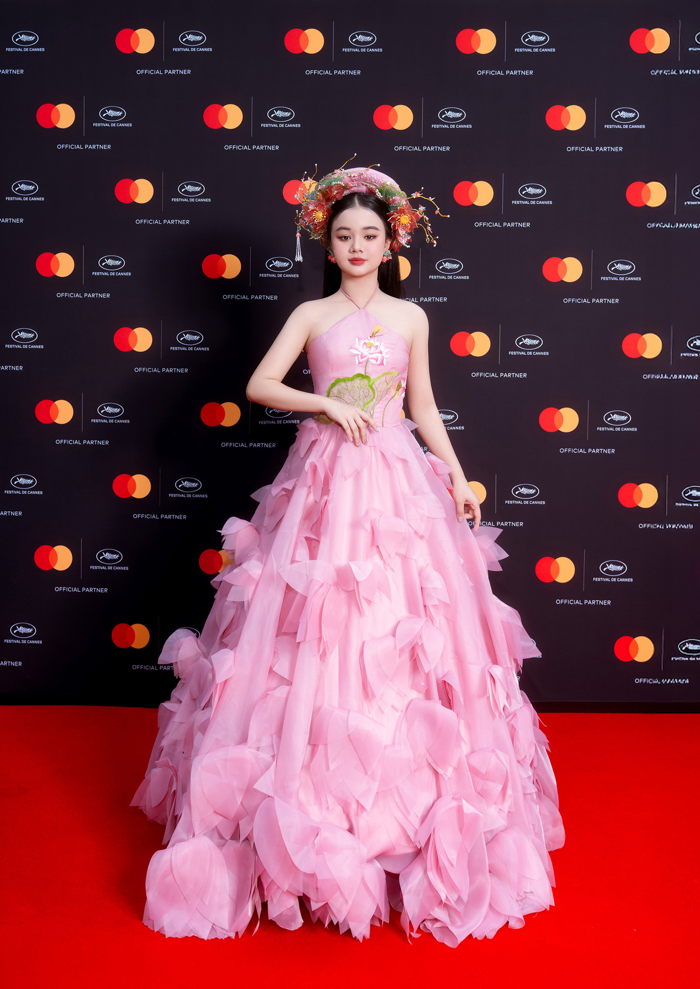 Trong số hàng trăm nghệ sĩ, người mẫu quốc tế quy tụ tại Liên hoan phim Cannes 2025 (Pháp) mới đây, mẫu teen Việt Maika Ngọc Khánh xuất hiện nổi bật với thiết kế lấy cảm hứng từ áo yếm truyền thống và họa tiết hoa sen.