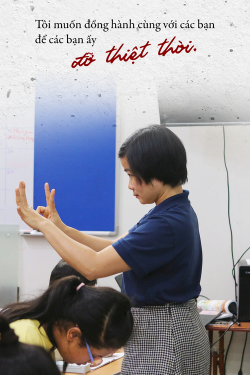 | Với chị Nga, cơ duyên để chị trở thành cô giáo dạy trẻ khiếm thính đến từ việc chị thấy “Các bạn được đi học thì sẽ có nhiều cơ hội hơn”. (Ảnh: Trần Thu Trang) |