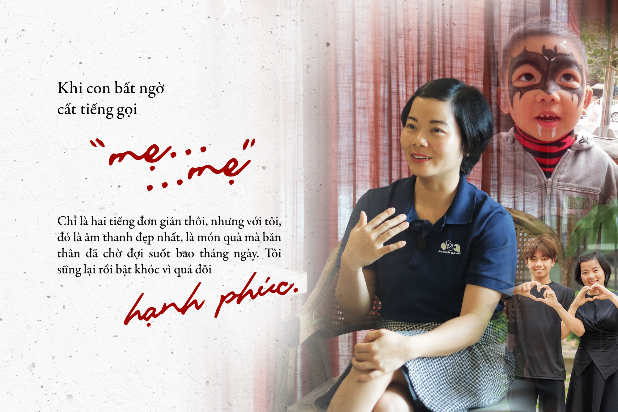 Chị có thể chia sẻ thêm về hành trình đồng hành cùng con không? Được biết chị còn học cả ngôn ngữ ký hiệu để giao tiếp với con được tốt hơn, vậy đâu là động lực để chị học ngôn ngữ này?