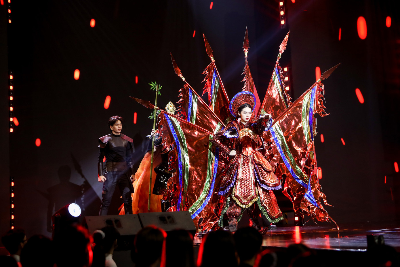 | Tiếp nối, team Mentor Hoàng Phương đưa khán giả về cội nguồn của người phụ nữ qua thiết kế Hoa Trạng Nguyên, Nữ tướng Tây Sơn. |