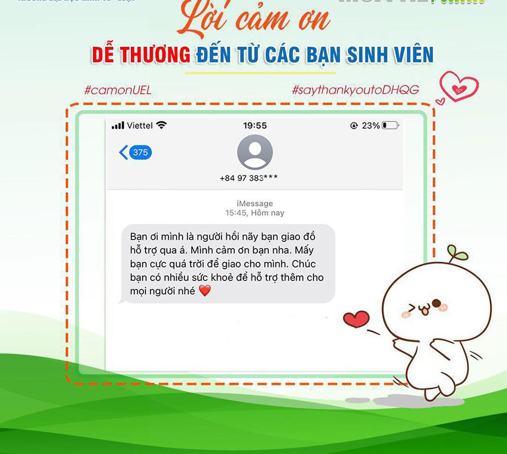 Nổi bật trong số đó, các chiến sĩ Kinh tế - Luật đã vận động được hơn 530 triệu đồng cho công tác phòng chống dịch và kịp thời hỗ trợ các sinh viên của trường còn ở lại TP. HCM, trong đó, đã trao 20 triệu đồng về Quỹ ủng hộ vắc-xin. Nhà trường còn tiến hành khảo sát thông tin và nhanh chóng chuyển rau quả, thực phẩm đóng hộp, tiền mặt đến tận nơi ở cho các bạn sinh viên.
