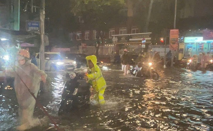 Cũng trong chiều tối 5-7, nắm thông tin các tuyến đường kết nối khu vực trung tâm TP Đà Nẵng về Hội An cũng các tuyến đường khu vực Cẩm Lệ, Thanh Khê, Liên Chiểu rơi vào tình trạng ngập sâu, gây khó khăn cho việc lưu thông, tiềm ẩn nguy cơ ùn tắc và tai nạn giao thông, lực lượng CSGT Công an TP Đà Nẵng đã khẩn trương triển khai các tổ công tác đến các điểm ngập úng, kịp thời tổ chức phân luồng, điều tiết giao thông, hạn chế tối đa tình trạng ùn tắc kéo dài.