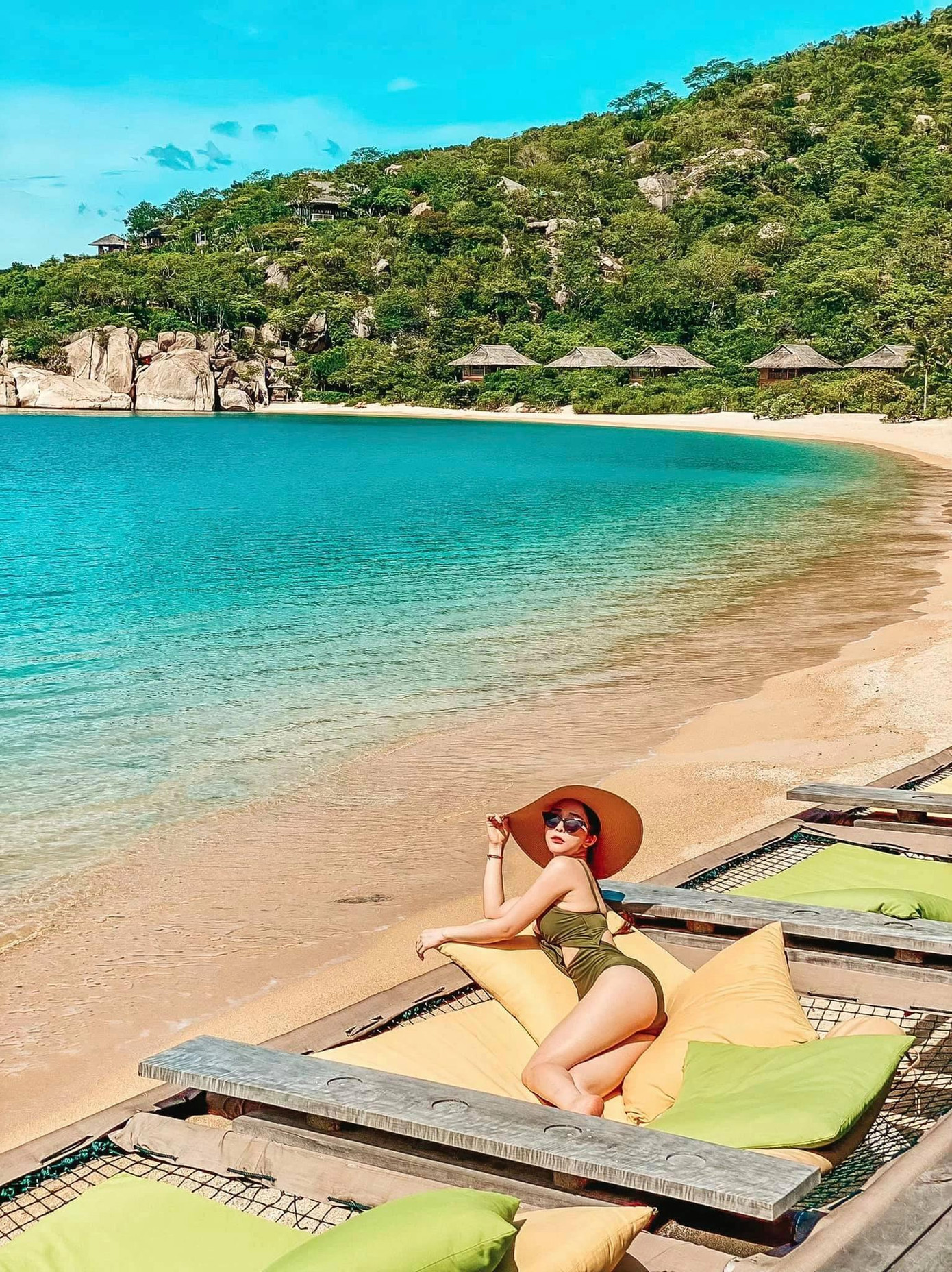 Nữ diễn viên vừa tung ra loạt ảnh khoe vóc dáng nuột nà trong những bộ bikini bé xíu. Huyền Lizzie sở hữu vòng eo có 58 cm, càng giúp thân hình cô lộ rõ đường cong chữ S mềm mại.