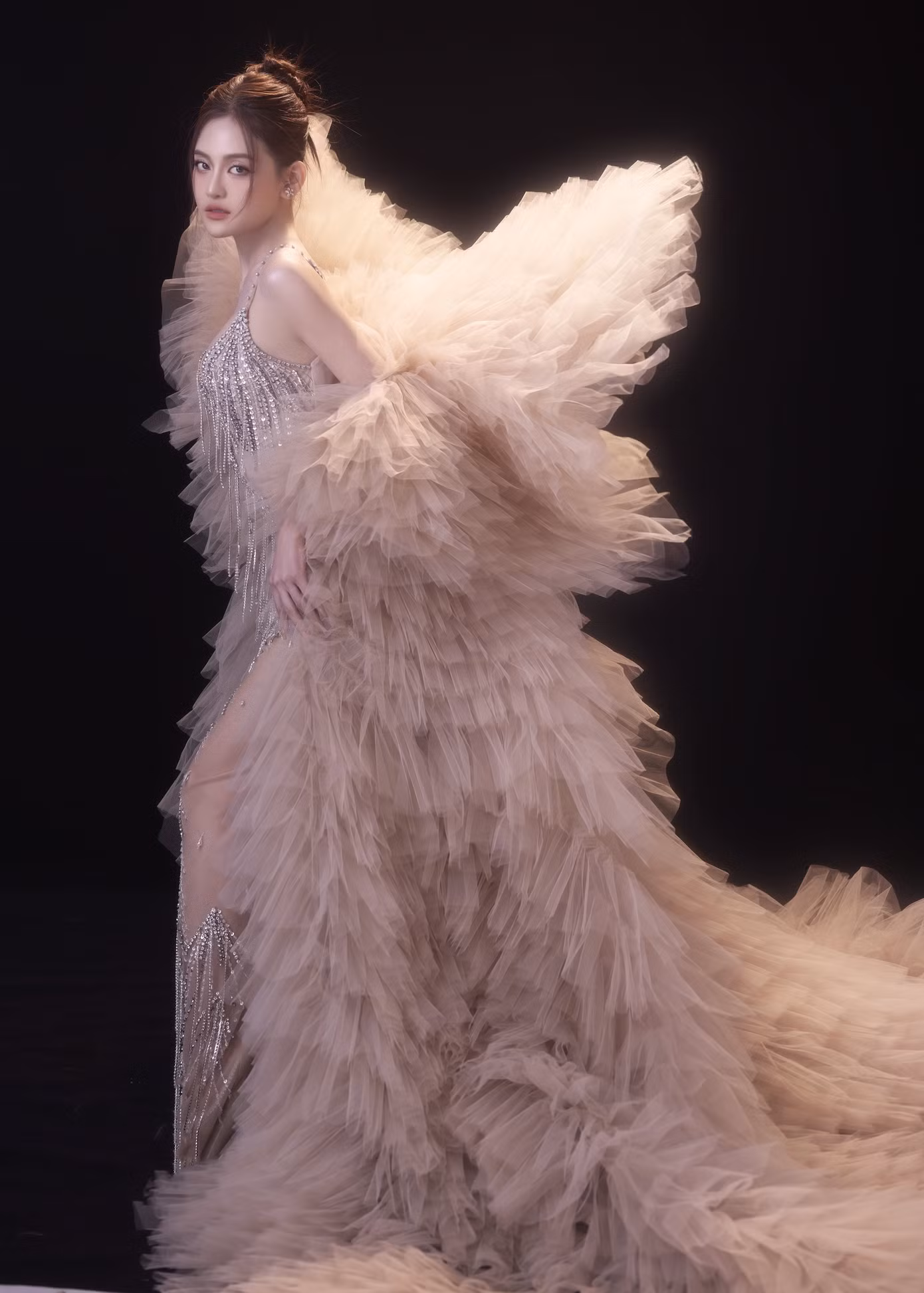 Set đồ lấp lánh tôn dáng mình hạc xương mai, quyến rũ gợi cảm. Người đẹp thả hồn vào từng góc chụp, khoe vẻ đẹp trưởng thành, mặn mà khi tiến gần đến mốc 30, nhưng vẫn giữ cho mình vẻ bay bổng, mộng mơ quen thuộc. Trước đó, cô nàng Như Ý của phim Chúng ta của 8 năm sau được khán giả yêu thích bởi có gu thời trang sang chảnh, “cân” mọi item từ váy áo công sở đến đồ cut-out khoe eo thon. Dù lịch trình quay phim và ghi hình gameshow bận rộn, cô giữ thói quen tập gym, boxing và ăn uống khoa học để giữ dáng chuẩn mực.