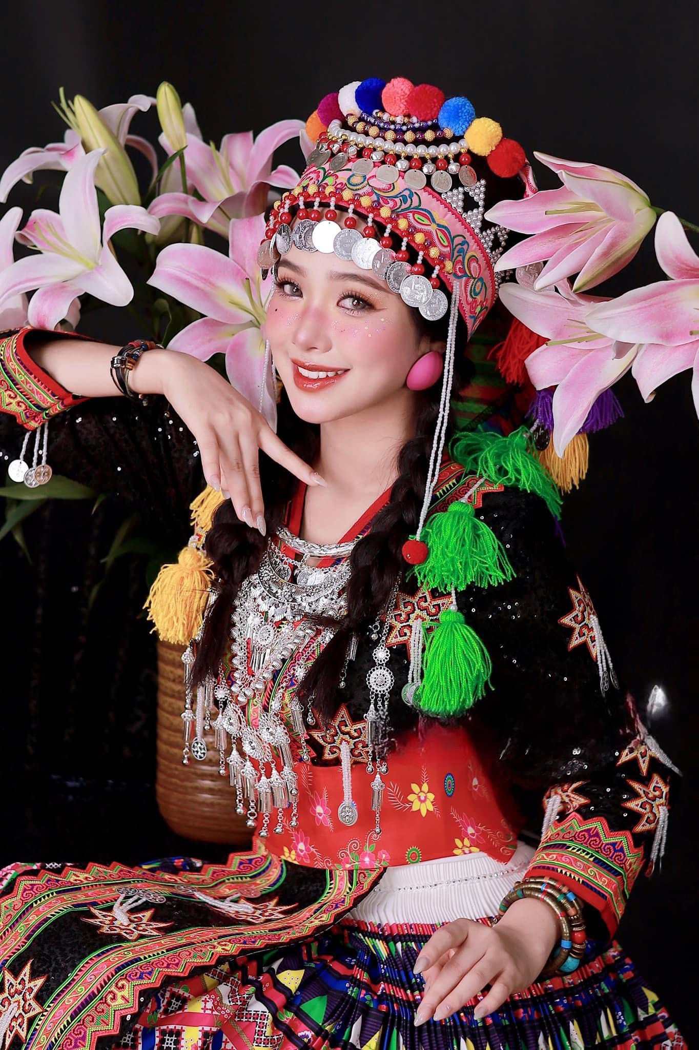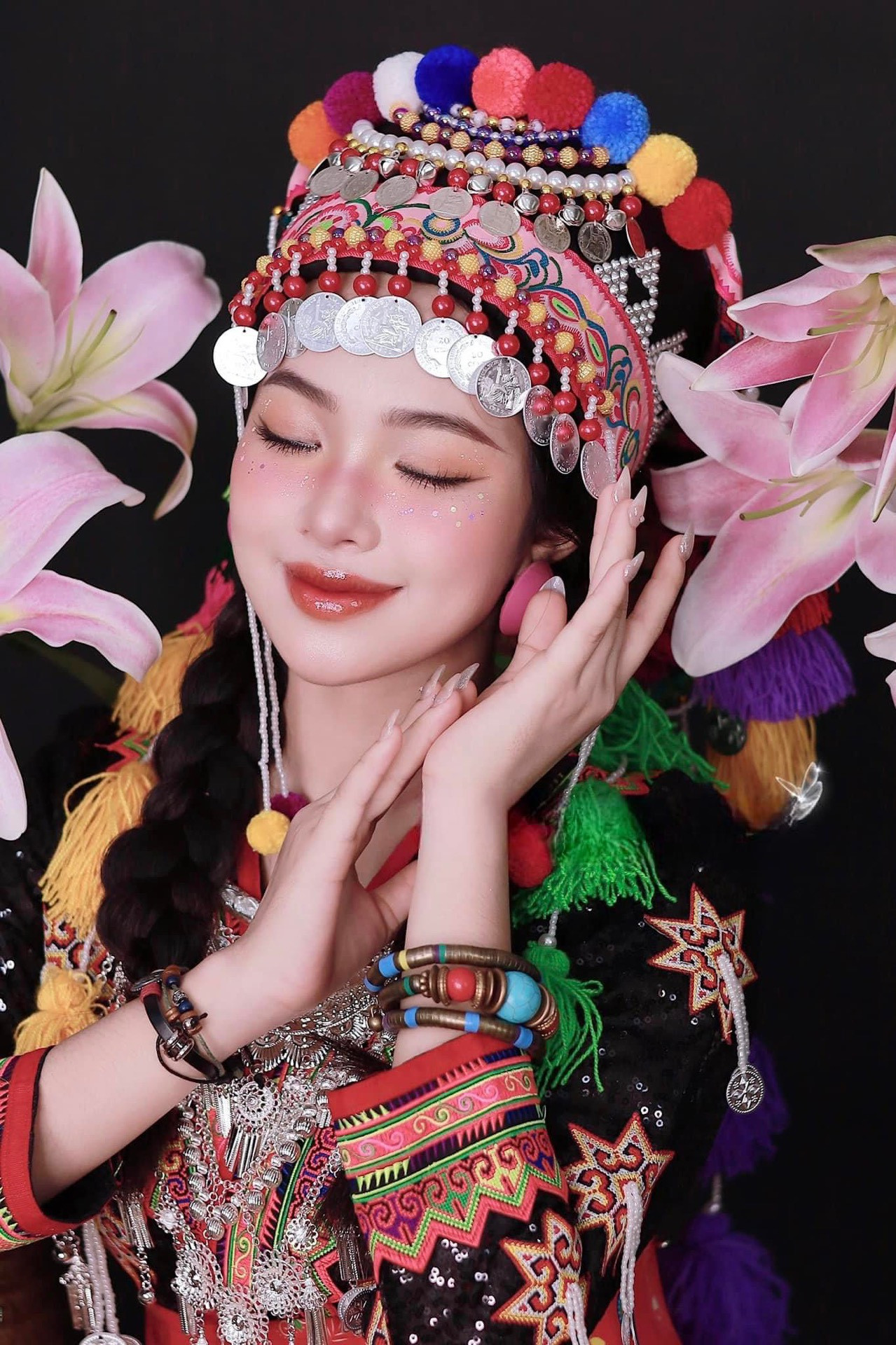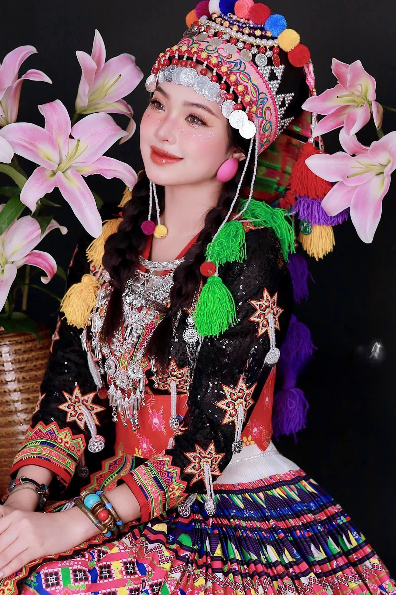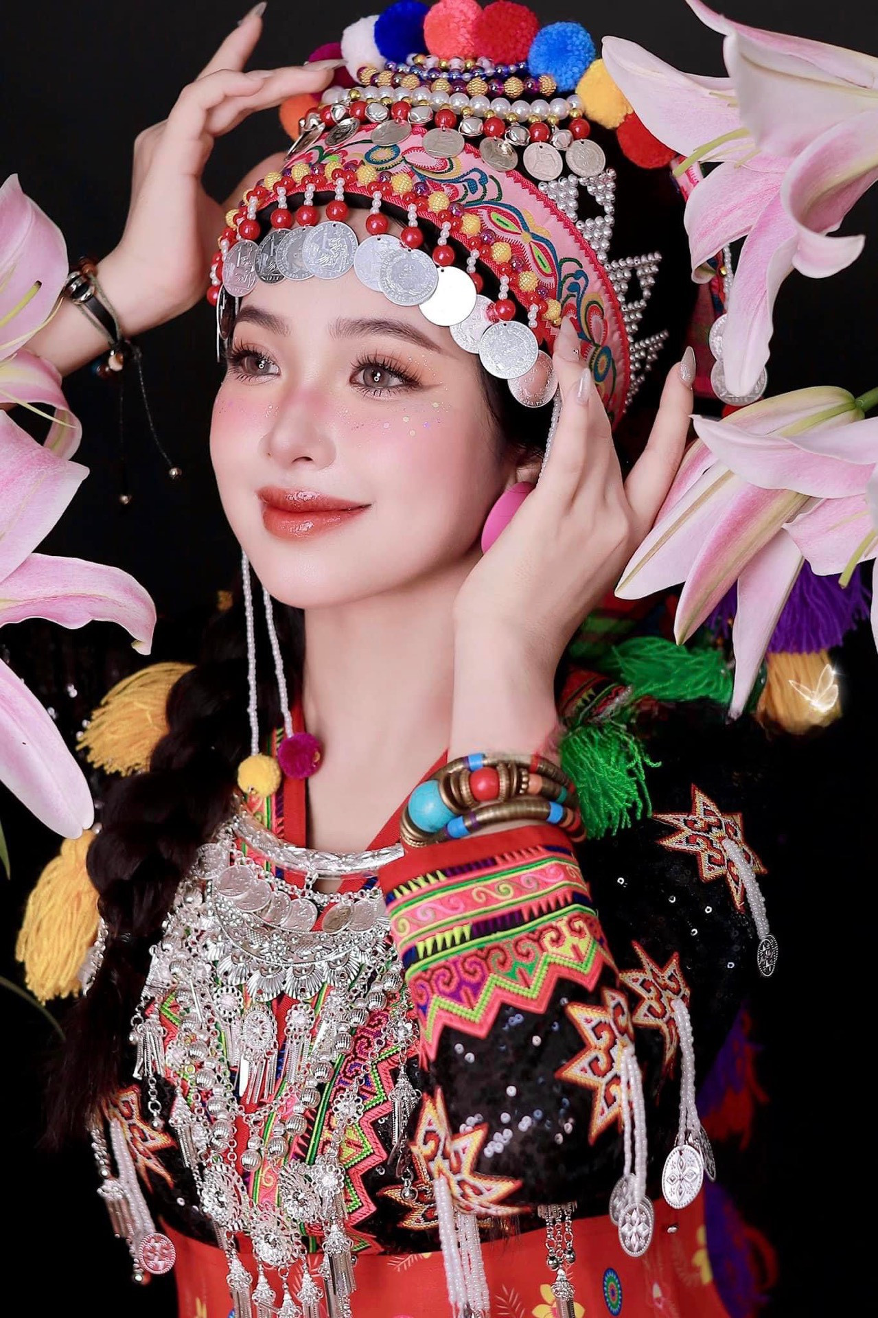 Trong bộ trang phục dân tộc có phần được cách điệu, Trà My giống như một “bông hoa của núi rừng Tây Bắc” khoe sắc và tỏa ngát hương. Bộ ảnh của cô bạn cũng thu hút rất nhiều sự quan tâm và lời khen đến từ cộng đồng mạng.
