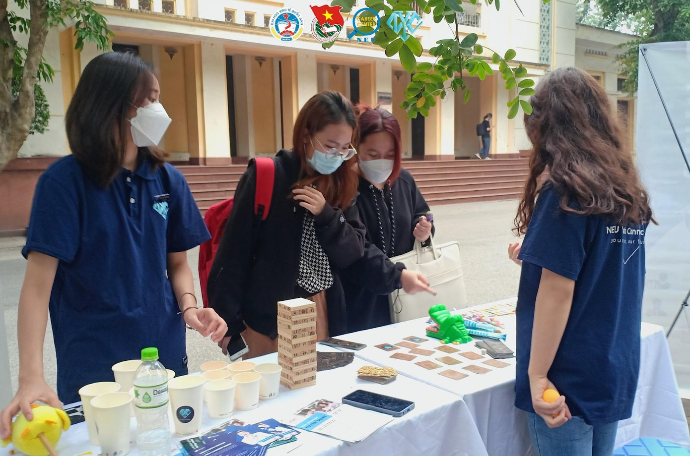 | Bàn truyền thông với những trò chơi đặc sắc thu hút nhiều sinh viên tham gia. |