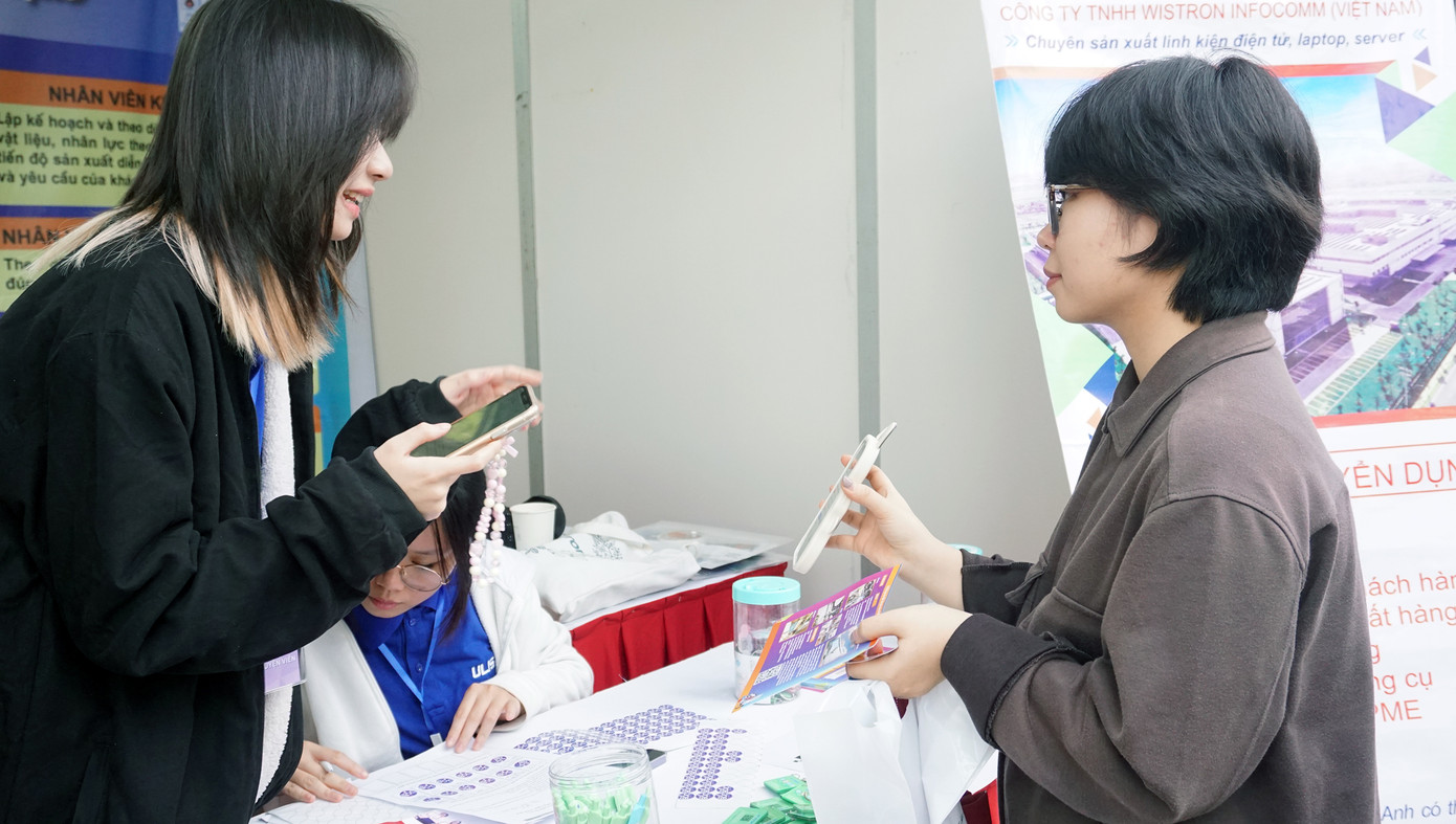 Nguyễn Hoài Thương (năm thứ ba, ngành Sư phạm Tiếng Anh) chia sẻ: "Ngày hội việc làm thực sự là một cơ hội tuyệt vời để mình gặp gỡ các nhà tuyển dụng, cải thiện kỹ năng phỏng vấn và tìm hiểu về các công ty mà mình mong muốn làm việc. Những hoạt động bổ ích như vậy giúp mình cảm thấy tự tin hơn khi bước vào thị trường lao động".