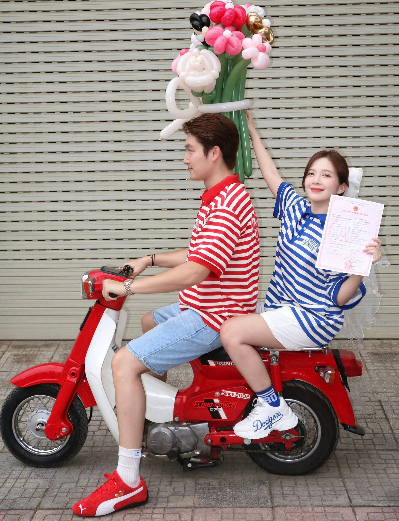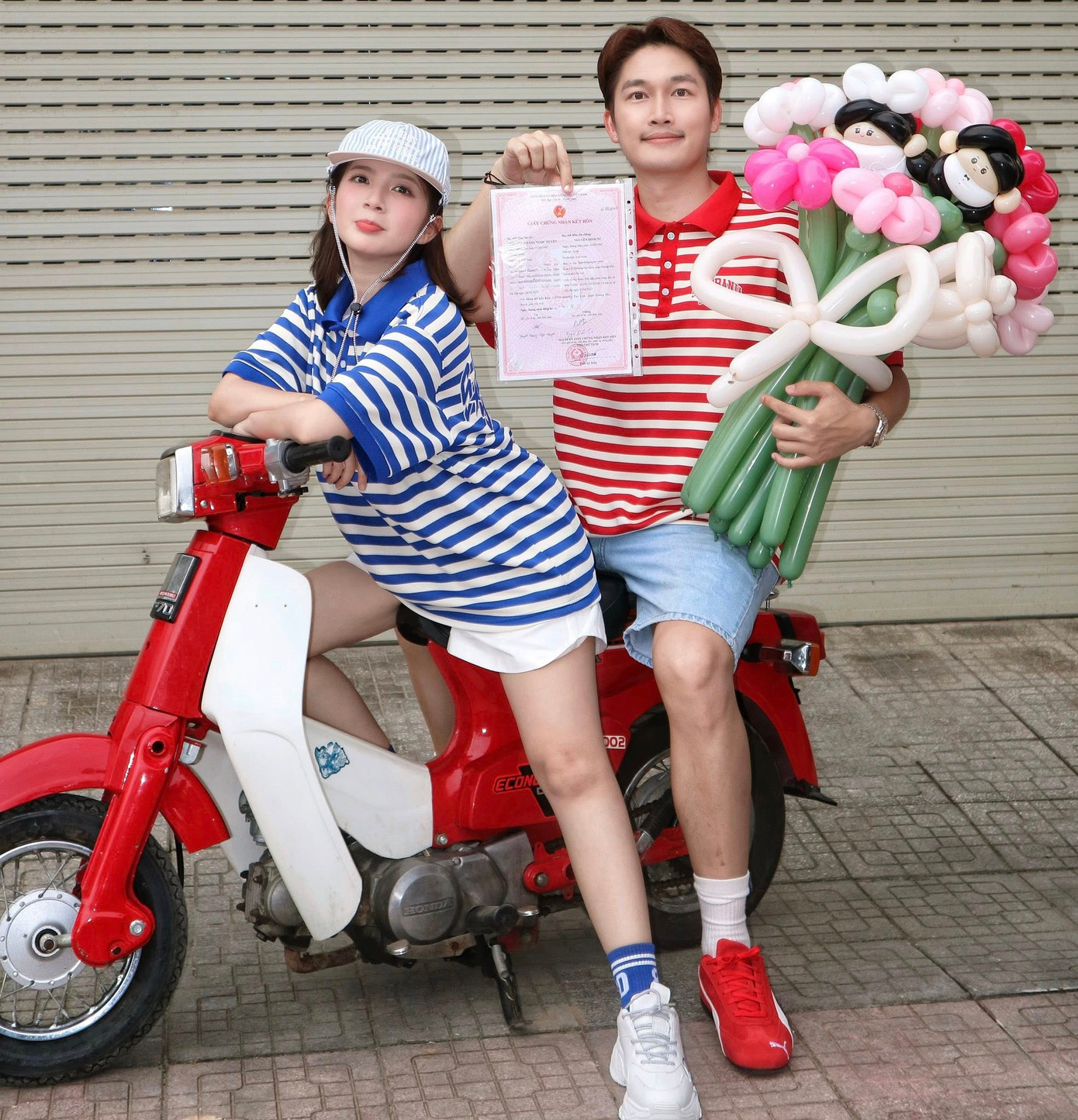 Ngày 22/6, Ngọc Huyền và Đình Tú công bố tin vui, đã hoàn tất thủ tục đăng ký kết hôn. “Danh hiệu đầu tiên trong cuộc đời tôi. Nghệ sĩ yêu Tú”, Ngọc Huyền viết.