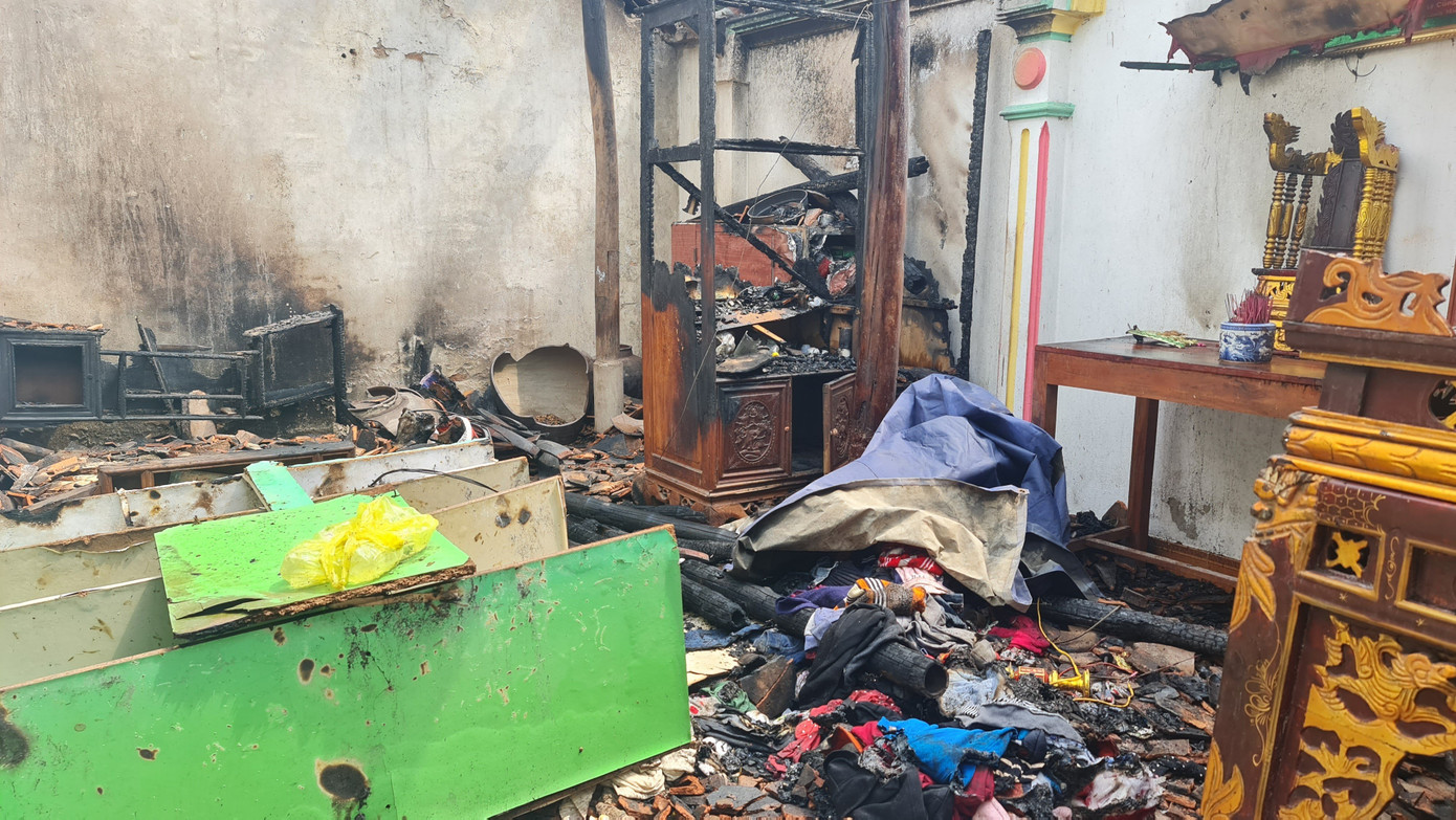 | Toàn bộ đồ đạc bên trong ngôi nhà bị cháy gần hết |