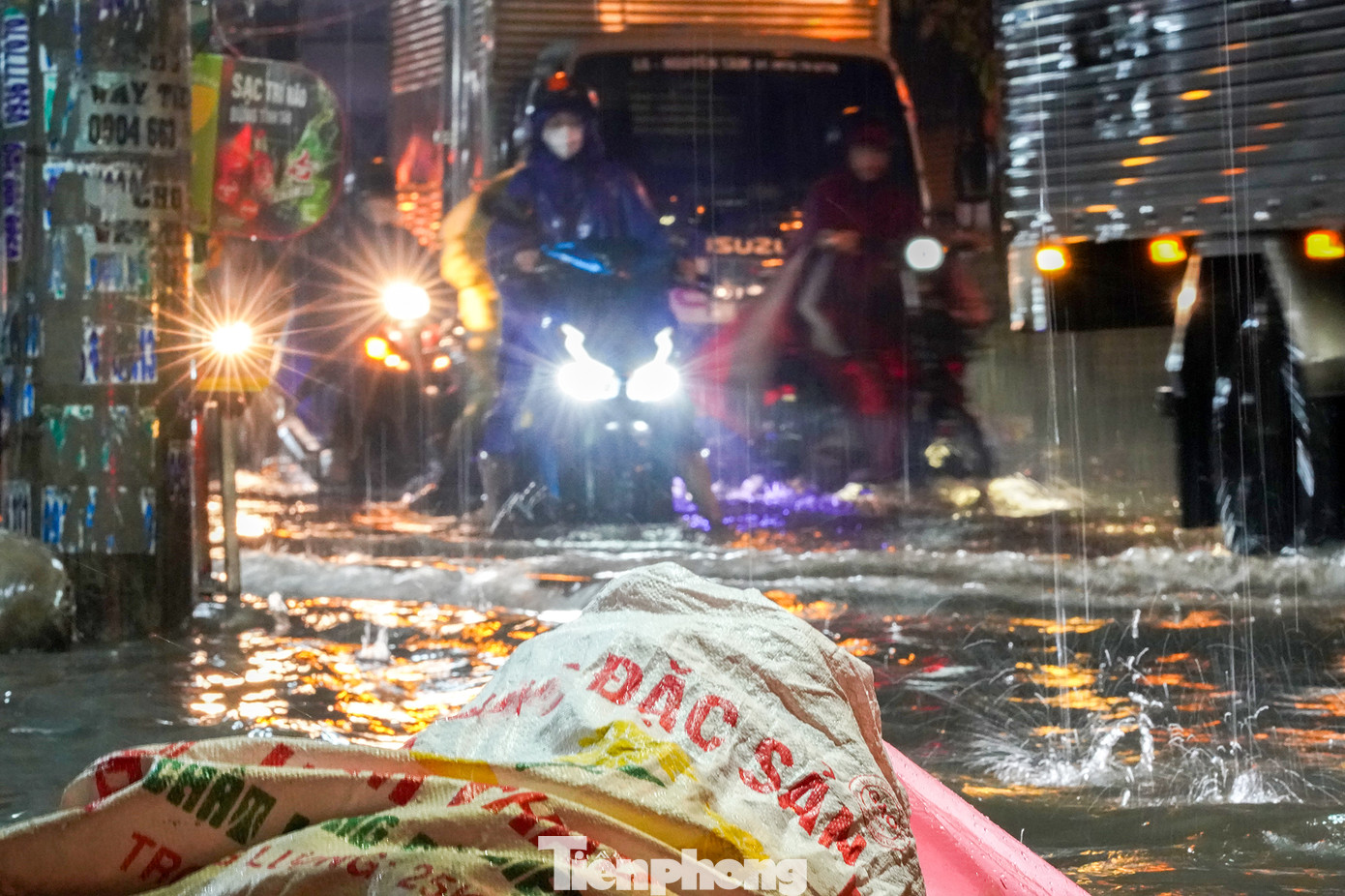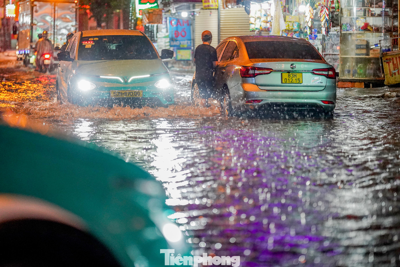| Mưa đúng vào khung giờ tan tầm, khiến giao thông trở nên hỗn loạn. Người dân phải vật lộn di chuyển qua các đoạn đường ngập, nhiều phương tiện chết máy giữa dòng nước, gây ùn tắc kéo dài. |
