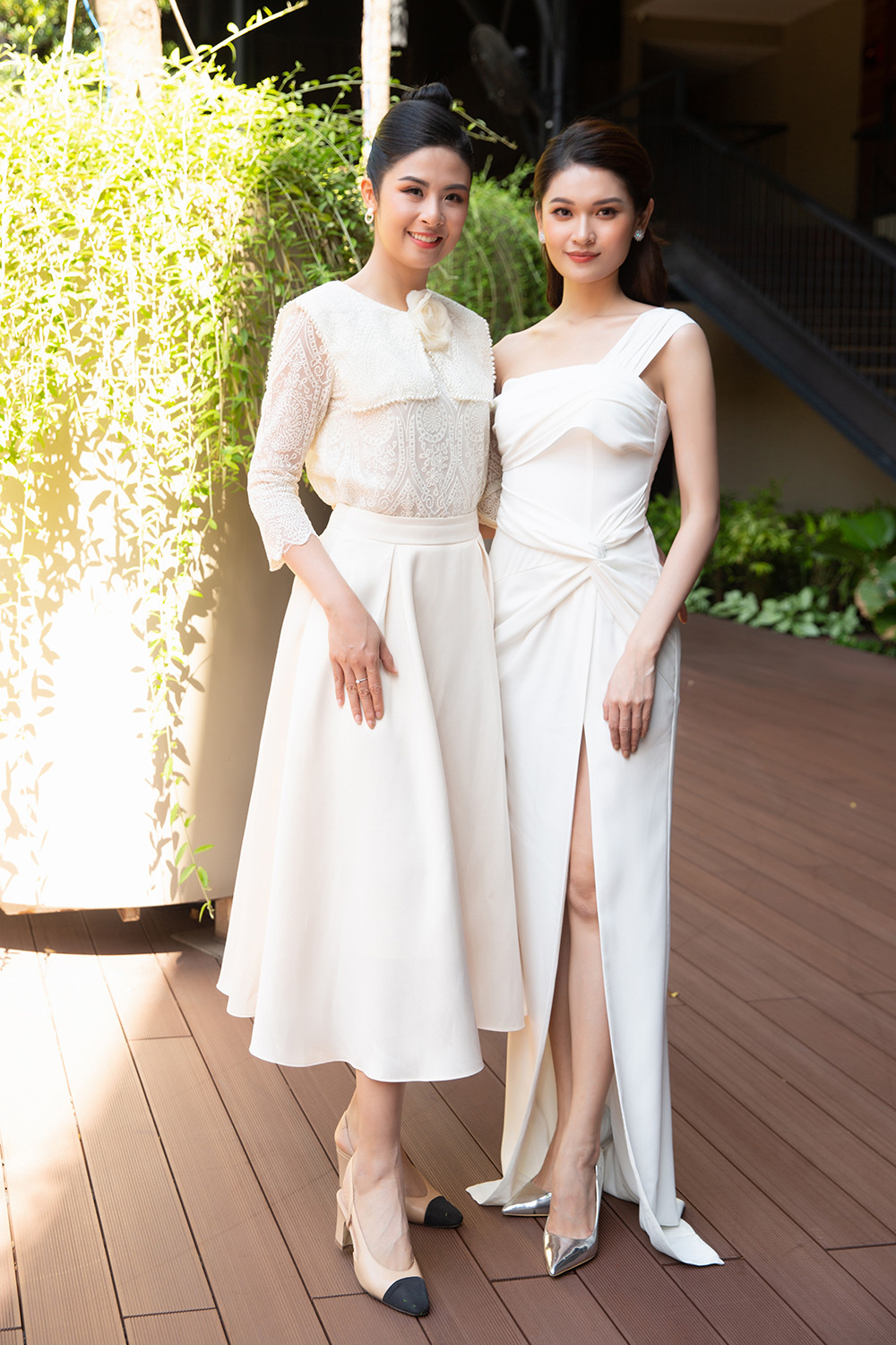 Tại sự kiện, Thùy Dung có dịp hội ngộ hoa hậu Ngọc Hân. Đặc biệt, Thùy Dung dành thời gian trò chuyện cùng đàn chị Ngọc Hân.