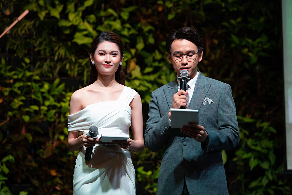 Tại sự kiện, Thuỳ Dung sánh đôi bên MC điển trai Quang Bảo.