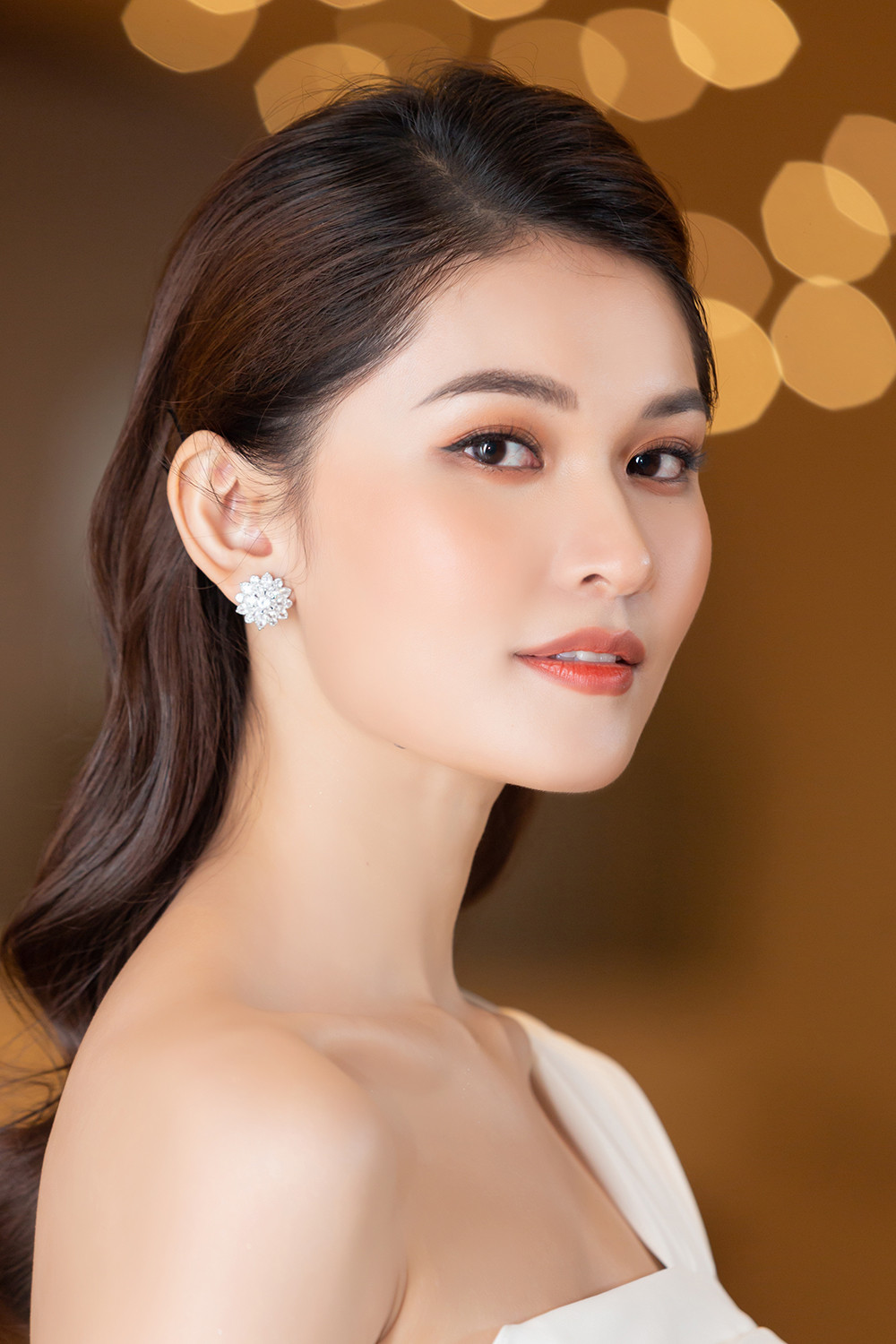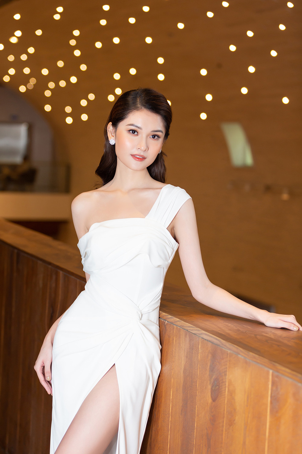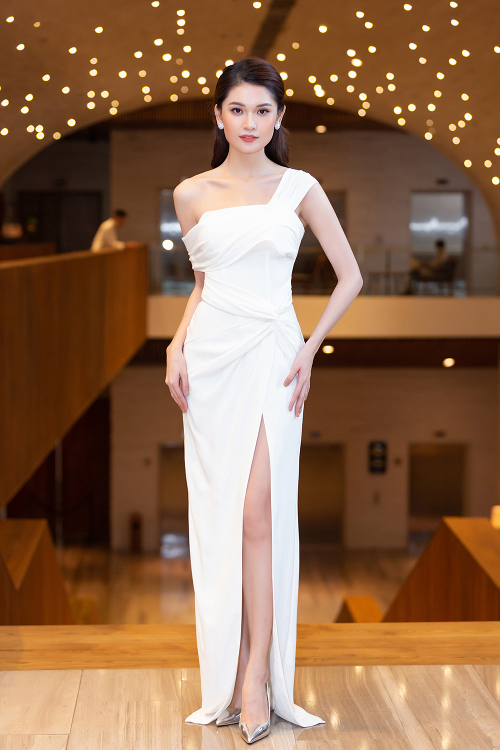 hùy Dung khoe nhan sắc cuốn hút với trang phục dạ hội màu trắng thanh lịch và tinh tế.