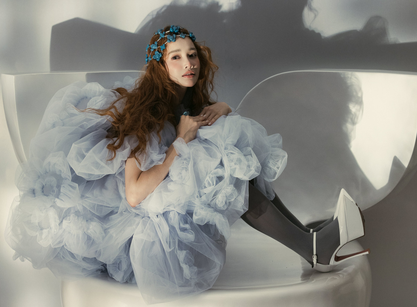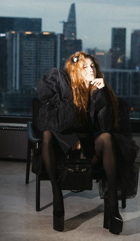 Với thiết kế bồng bềnh, tựa như đám mây xám đính kết thêm những bông hoa nhỏ nhắn giúp nữ ca sĩ trở nên nổi bật và tôn lên nét nữ tính, cuốn hút. Ngoài ra, điểm xuyến khiến outfit thu hút hơn chính là đôi giày cao gót và chiếc túi mini màu hồng khiến cô nàng như một công chúa đang tận hưởng trong một toà lâu đài hoành tráng.