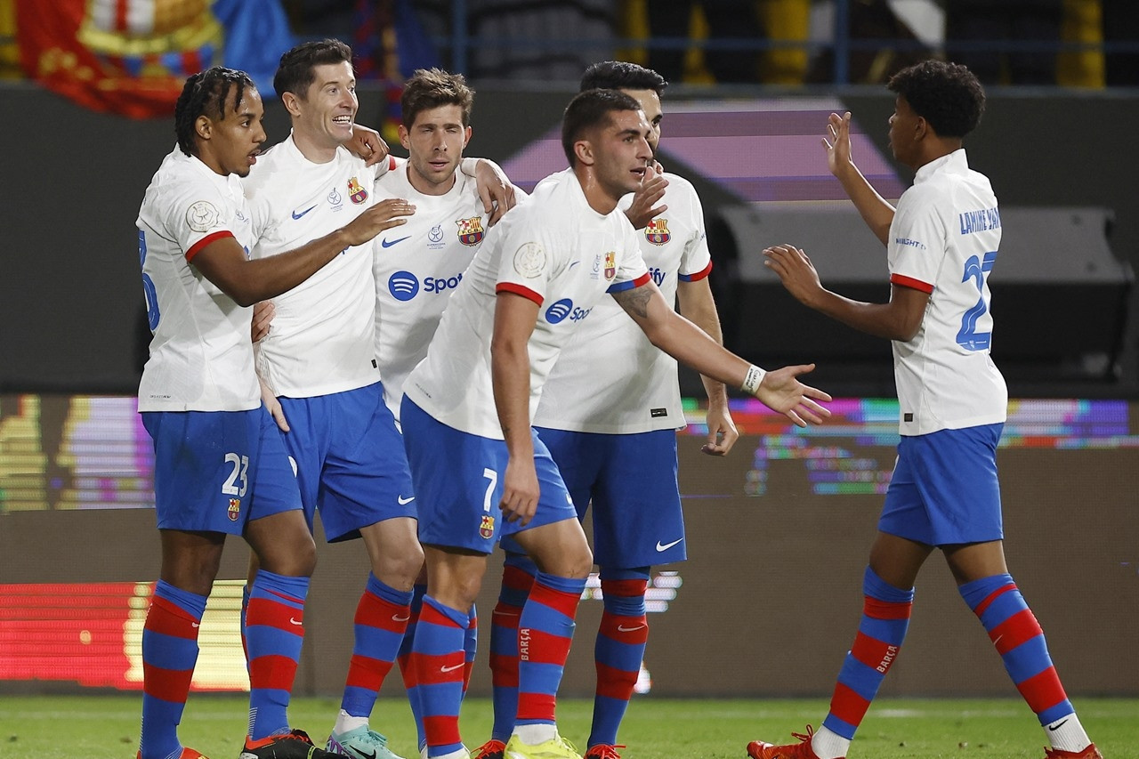 Barcelona: Pena; Kounde, Araujo, Cubarsi, Cancelo; Pedri, De Jong, Gundogan; Yamal, Torres, Lewandowski.