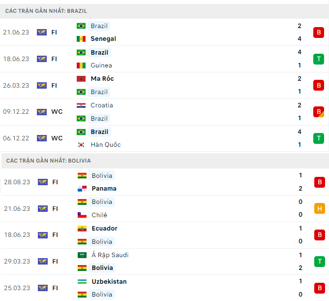Brazil bất bại và giữ sạch lưới 6 trận liên tiếp gần đây trước Bolivia, trong đó có 5 trận họ thắng đậm với cách biệt 3 bàn trở lên.