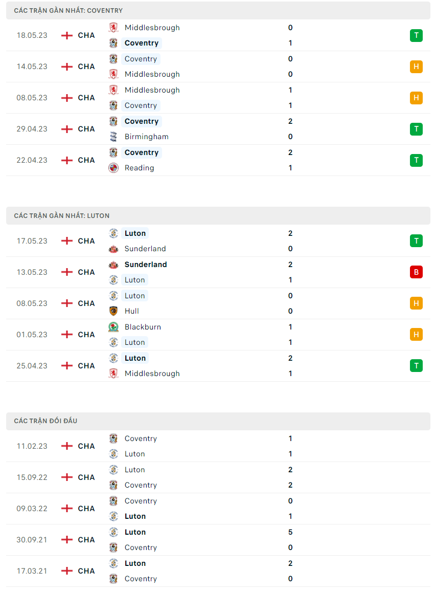 Phong độ, lịch sử đối đầu Coventry vs Luton Town