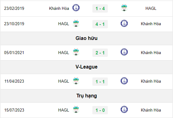 Phong độ, lịch sử đối đầu Khánh Hòa vs HAGL