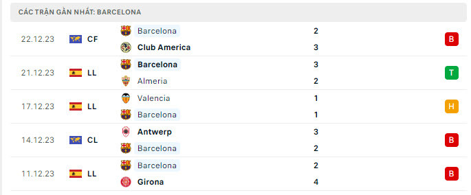 Barcelona khép lại năm 2023 không mấy vui vẻ bằng trận thua 2-3 trước đối thủ América trong một trận đấu giao hữu. Dẫu vậy, kết quả này cũng sẽ không ảnh hưởng quá nhiều đến khả năng giành chiến thắng trên sân khách của Barcelona trong trận đấu với Las Palmas tới đây.