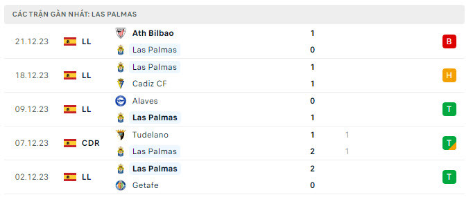 Lịch sử đối đầu, phong độ Las Palmas vs Barcelona