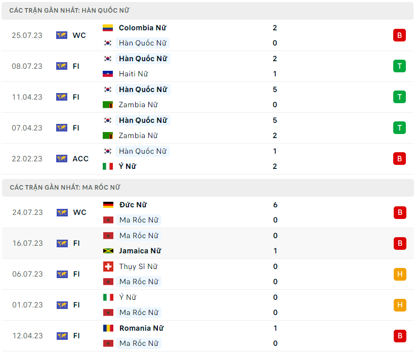 Phong độ, lịch sử đối đầu nữ Hàn Quốc vs nữ Morocco